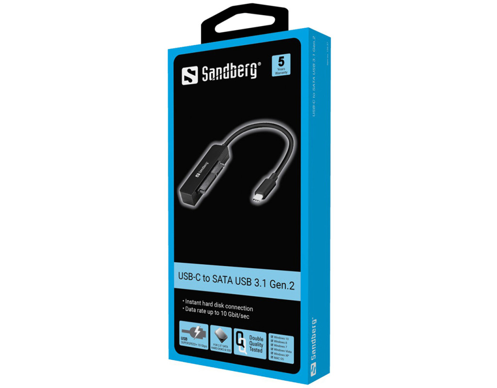 Переходник Sandberg USB-C to SATA Link (136-37) позволяет подключение внешнего жесткого диска SATA 2.5 дюйма к вашему компьютеру. Порт USB-C обеспечивает скорость передачи данных до 10 Гбит/с. Это прекрасное решение поможет вам с перемещением больших объемов данных и осуществлением регулярного резервного копирования данных. |