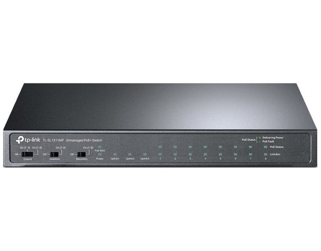 | Сетевой коммутатор TP-Link TL-SL1311MP — это надежное решение для малого бизнеса и офисов, обеспечивающее высокую производительность и удобство благодаря своим уникальным характеристикам. Этот 11-портовый неуправляемый коммутатор включает 8 портов 10/100 Мбит/с RJ45 с поддержкой PoE+, что позволяет передавать данные и питание одновременно. Он также оснащен 2 гигабитными портами RJ45 и 1 гигабитным портом SFP, обеспечивающими гибкость подключений и быстрое передача данных. Идеально подходит для IP-наблюдения благодаря расширенному режиму, который увеличивает дистанцию передачи до 250 м. Это позволяет легко настраивать видеонаблюдение на больших территориях, таких как кампусы или заводы. Для локаций, где важна бесперебойная работа устройств, функция PoE Auto Recovery автоматически обнаруживает и перезагружает неработающие PD-устройства, обеспечивая стабильность системы без необходимости вмешательства. Металлический корпус, обеспечивающий высокую надежность и защиту от механических повреждений, вместе с конструкцией без вентилятора гарантируют тихую и эффективную работу. Коммутатор поддерживает Plug and Play, поэтому не требует сложной настройки, что упрощает процесс интеграции в уже существующую сеть. Благодаря интеллектуальному управлению питанием: если общее энергопотребление превысит 124 Вт, питание распределяется автоматически, что обеспечивает приоритизацию для критически важных устройств. Это решение существенно повышает безопасность и надежность вашей сети. Обеспечьте длительный срок службы и высокую эффективность вашей системы с TP-Link TL-SL1311MP. |