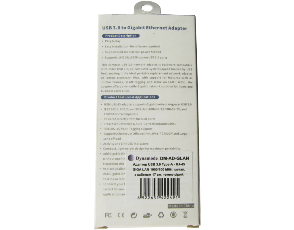 Сетевой адаптер Dynamode DM-AD-GLAN: USB 3.0 - Gigabit 1000/100/10 Мбит/с обеспечивает быстрое и стабильное подключение вашего ноутбука или компьютера к сети Ethernet через порт USB Type-A. Он может заменить сломанную внутреннюю сетевую карту, добавить отдельно маршрутизируемый сетевой интерфейс и передавать файлы в одноранговой сети через Ethernet. С этим адаптером вы получите высокую скорость передачи данных и надежное интернет-подключение без задержек. Просто вставьте адаптер в порт USB 3.0 на вашем компьютере и начните передавать большие видео, аудио и графические файлы между вашей рабочей станцией и сетью. Более быстрая и стабильная сеть Gigabit Ethernet 10/100/1000 Мбит/с делает этот адаптер USB-Ethernet более быстрым и надежным, чем большинство беспроводных подключений. |
