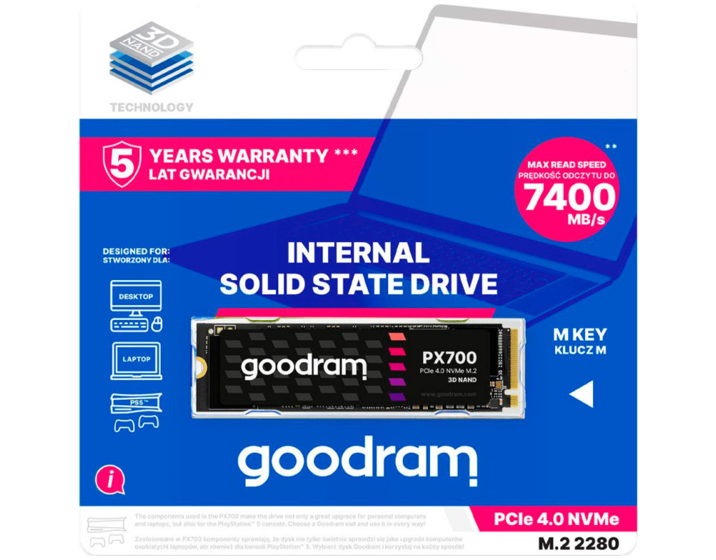 | Откройте двери к безупречной продуктивности с накопителем SSD M.2 2280 2TB Goodram (SSDPR-PX700-02T-80). Этот внутренний накопитель сочетает в себе передовые технологии и надежность, что делает его идеальным решением для всех ваших нужд – от повседневной работы до требовательных игровых сессий. Оснащенный объемом памяти 2 TB и технологией 3D NAND, этот SSD обеспечивает непревзойденную скорость и длительный срок службы данных. Форм-фактор M.2 2280 вместе с интерфейсом PCI Express 4.0 x4 гарантирует безупречную совместимость с современными компьютерами и ноутбуками. Повышенная скорость чтения и записи, достигающая 7400 Mb/s и 6500 Mb/s соответственно, делает загрузку игр и открытие программ молниеносными. Технология HMB 3.0 (Host Memory Buffer), внедренная в Goodram PX700, является ключом к управлению памятью. Используя оперативную память компьютера, этот накопитель способен оптимально распределять биты, что обеспечивает стабильную производительность даже при выполнении самых сложных задач. Благодаря этой технологии данные доступны мгновенно, устраняя задержки, что критически важно как для профессиональных приложений, так и для игровых сред. Преимуществом накопителя является также его энергоэффективность. Благодаря возможности оптимизации управления питанием, Goodram PX700 снижает потребление энергии, что особенно важно для мобильных пользователей. Это позволяет существенно увеличить время автономной работы ноутбуков, сохраняя вашу продуктивность на высоте в течение всего дня. Goodram SSDPR-PX700-02T-80 – это отличный выбор как для геймеров, так и для тех, кто стремится получить больше от своего компьютера или ноутбука. Он также идеально подходит для использования в PS5, открывая новые горизонты в мире развлечений. Почувствуйте качество и скорость, которых заслуживает ваше устройство, и откройте новые возможности вместе с Goodram PX700. |