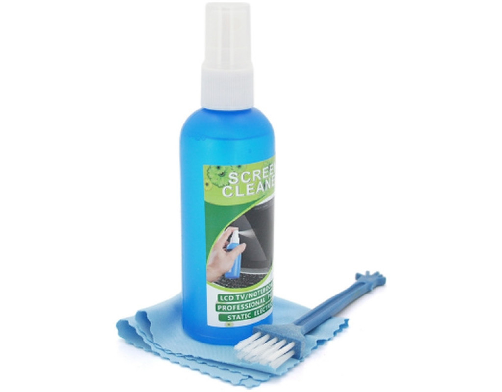 салфетка з микрофибры, спрей для очистки, щетка