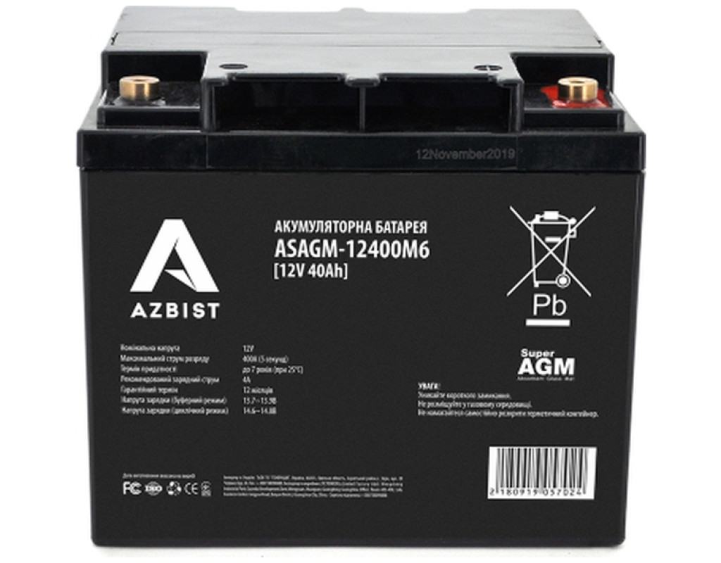 Аккумулятор AZBIST Super AGM ASAGM-12400M6 – надежный электрический компаньон для ваших устройств. Имеет герметичный прочный корпус, который прослужит долго. Применение: - источники бесперебойного питания