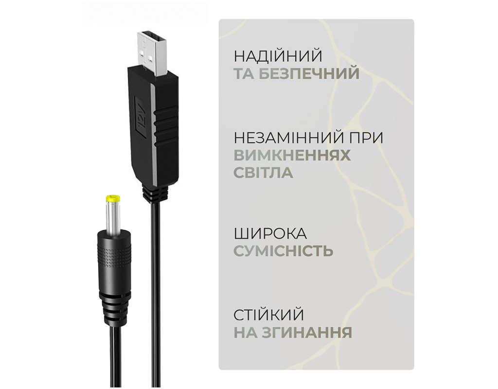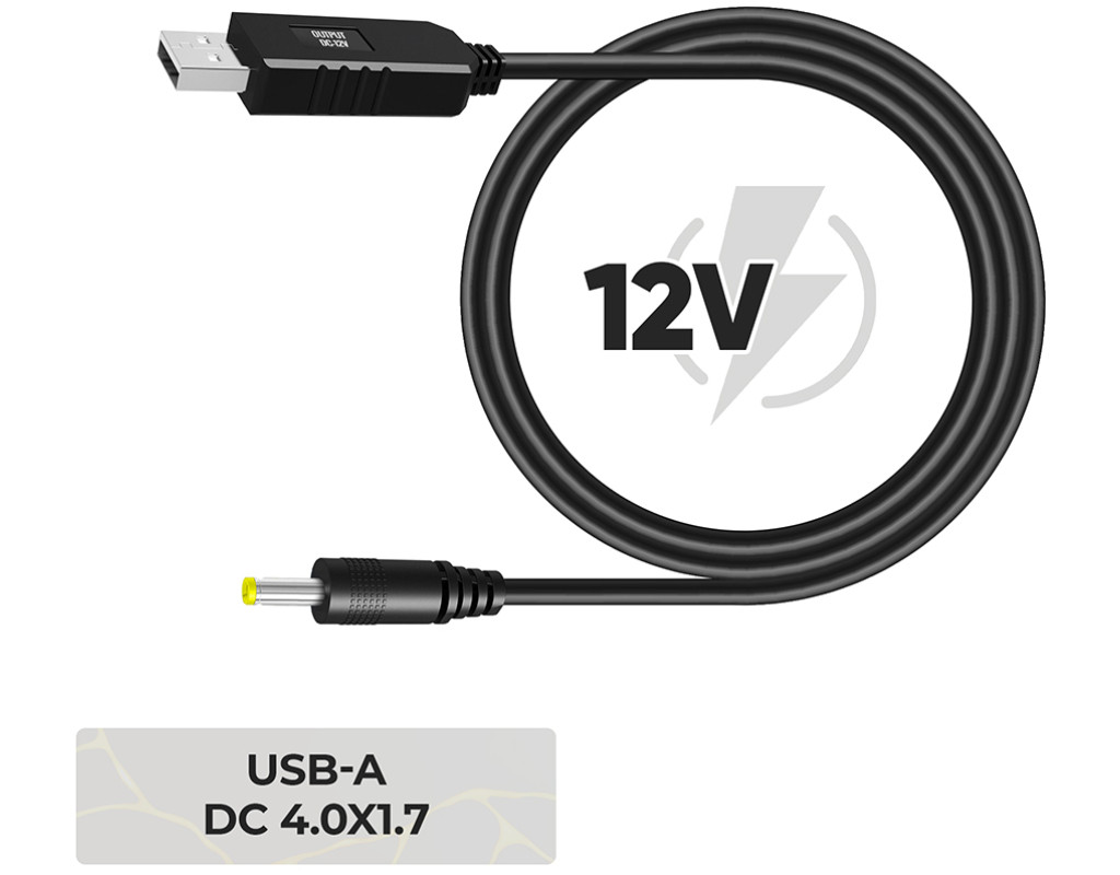 Кабель питания ArmorStandart USB-DC 4.0x1.7 12V 0.8 мпомогает при выключении электричества спросить роутер от повербанка и продолжать пользоваться интернетом (если провайдер продолжает подавать интернет в роутер). Кабель для роутера работает практически от любого повербанка, даже от не имеющего быстрой зарядки, так как шнур содержит встроенную плату, что повышает напряжение до 12 вольт. Совместим с большинством моделей Wi-Fi роутеров и терминалов ONU (GPON), а также любых других устройств с соответствующими параметрами. Простое подключение без дополнительных настроек: USB штекер вставляется в Powerbank, а DC штекер в устройство, которое нужно запросить. Рекомендуется подбирать кабель с характеристиками, соответствующими устройству. Обычно на нижней панели устройства в поле Input (Вход) указывается требуемое напряжение устройства. Характеристики: