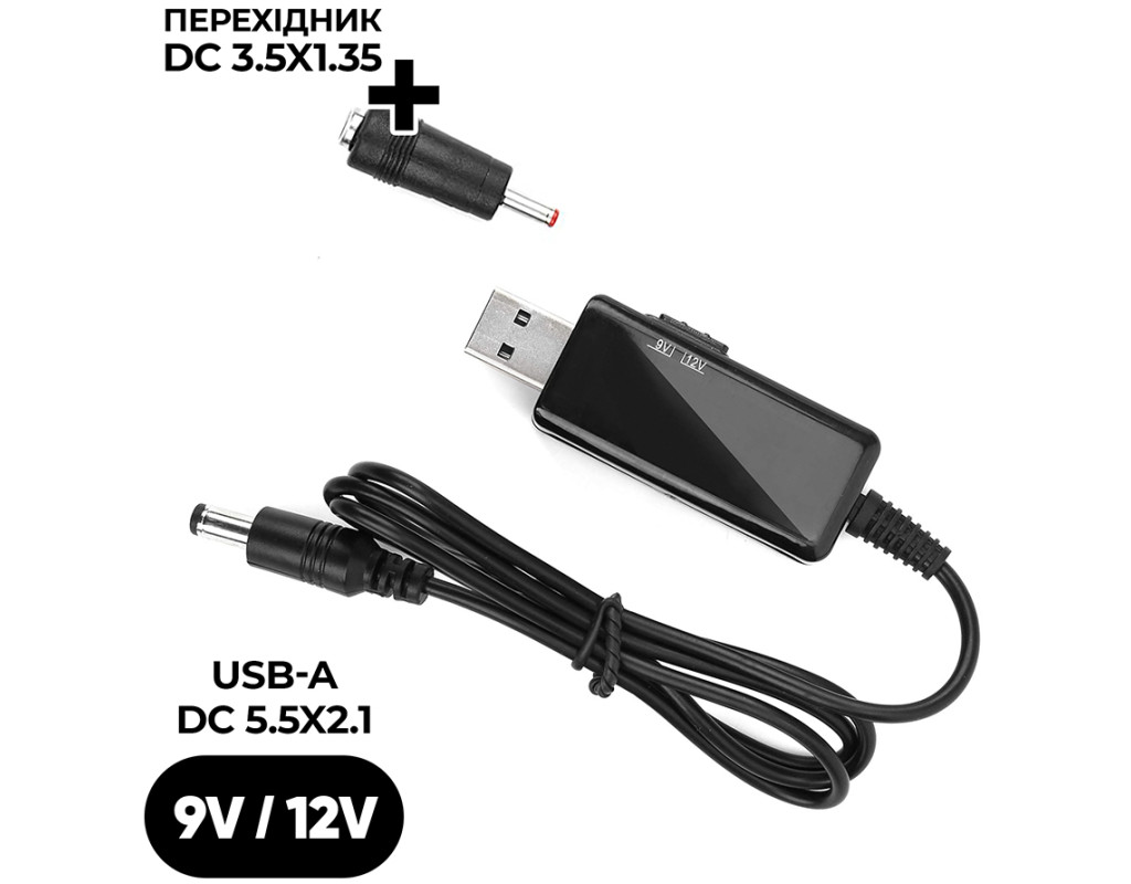 Кабель ArmorStandart USB boost converter DC 5V to 9V/12V + 3.5x1.35 mm помогает при выключении электричества запитать роутер от повербанка и продолжать пользоваться интернетом (если провайдер продолжает подавать интернет к роутеру). Кабель для роутера работает практически от любого повербанка, даже от не имеющего быстрой зарядки, так как шнур имеет переключатель напряжения от 9 вольт до 12 вольт. Это повышает его функциональность. Совместим с большинством моделей Wi-Fi роутеров и терминалов ONU (GPON), а также любых других устройств с соответствующими параметрами. Простое подключение без дополнительных настроек: USB штекер вставляется в Powerbank, а DC штекер в устройство которое нужно запитать. Рекомендуется подбирать кабель с характеристиками соответствующими устройству. Обычно на нижней панели устройства в поле Input (Вход) указывается нужное устройству напряжение. Характеристики: