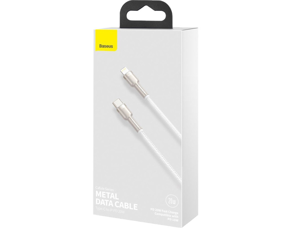 Дата кабель USB-C to Lightning 2.0m Cafule Metal PD 20W white Baseus (CATLJK-B02)