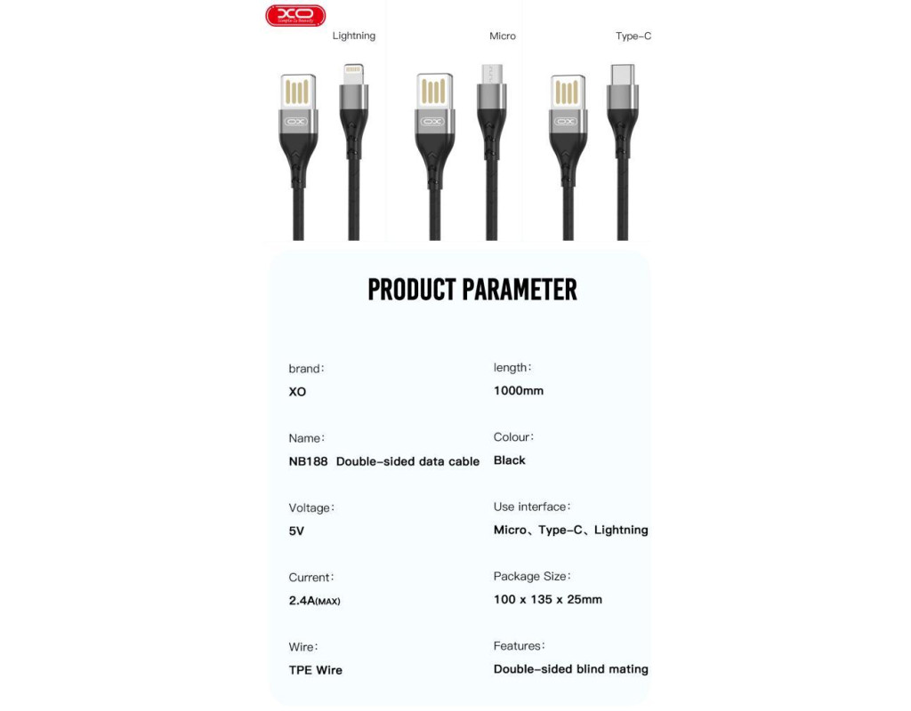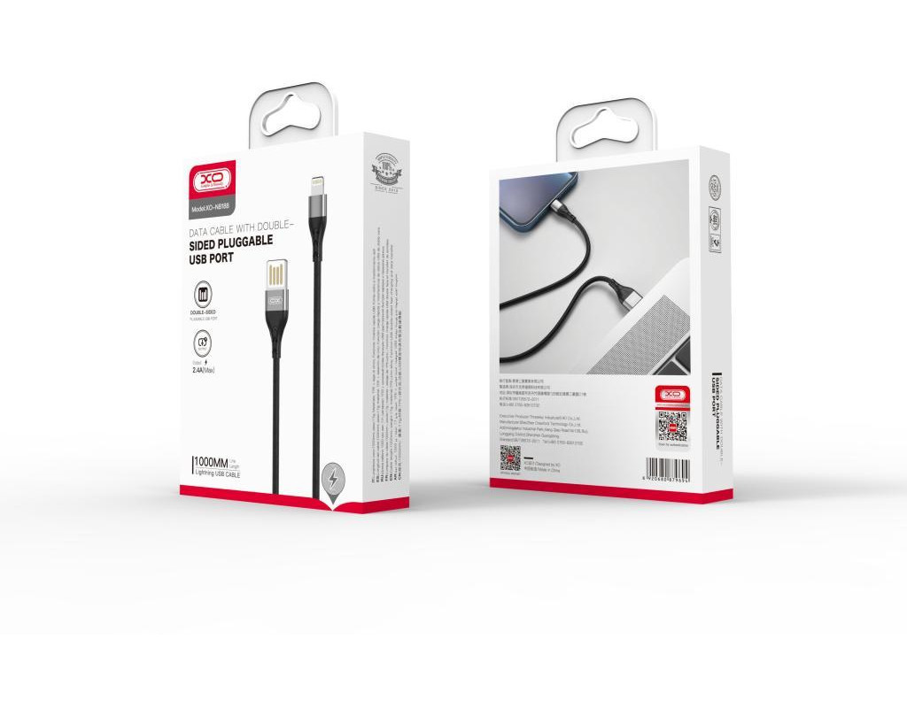Кабель XO lightning NB188 Double-side 2.4A/1m Grey – это кабель для тех, кто ценит современный дизайн и надежность в эксплуатации. Кабель изготовлен из качественных материалов, не занимает много места и выглядит очень аккуратно. Кабель XO NB188 может подключить устройство, как для синхронизации с компьютером, так и для зарядки. Кабель для синхронизации смартфона с компьютером XO NB188 подойдет для современных девайсов которые комплектуются разъемами lightning. Кроме разъема lightning на одном конце кабеля, на другом имеется разъем USB. Кабель долговечен и устойчив к перегибам, ведь имеет специальное прочное оплетки, а сам коннектор изготовлен из алюминия, который устойчив к нагреванию при нагрузках. Характеристики:
