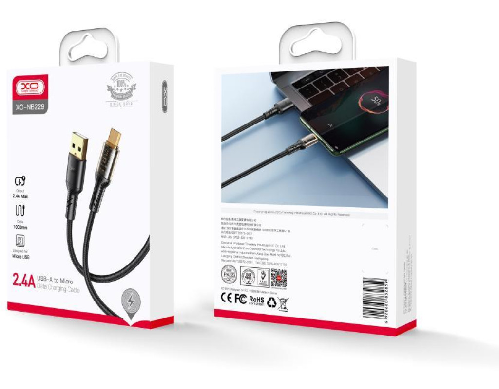 Кабель XO microUSB NB229 2.4A/1m – обладает высокой пропускной способностью передаваемых данных. Корпус штекеров выполнен в классической реализации, изготовлен из высококачественного и приятного на ощупь пластика. Плотный и одновременно гибкий на ощупь материал кабеля препятствует запутыванию и гарантирует сохранение оплетки и функциональность кабеля на долгое время. Характеристики: