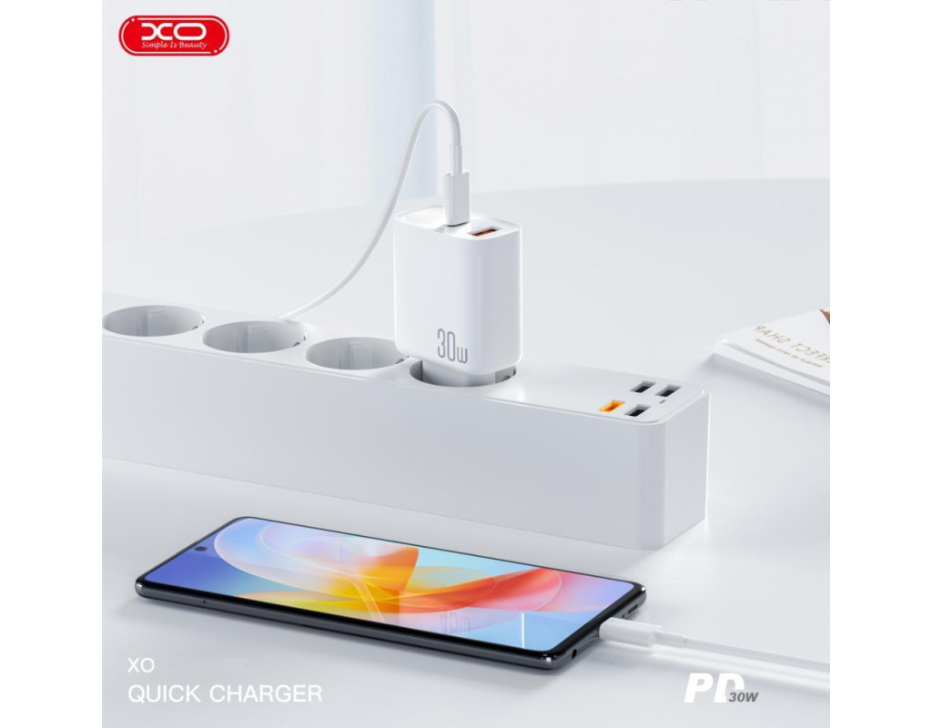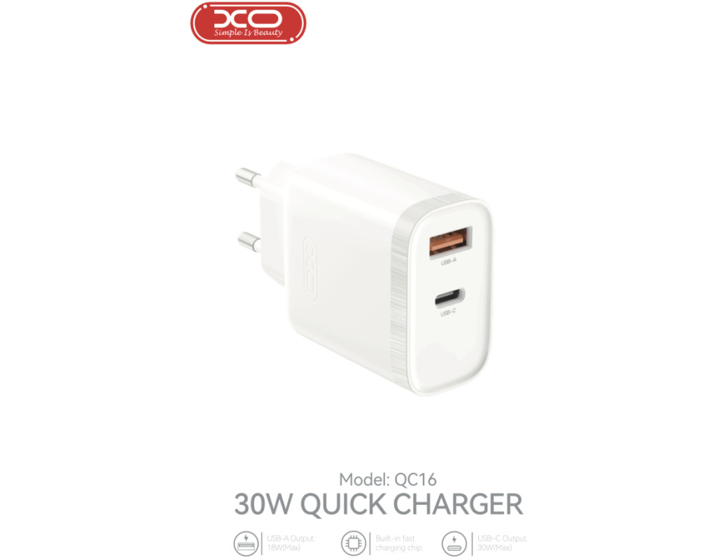 Зарядное устройство XO QC16 – это компактное зарядное устройство с поддержкой быстрой зарядки. Он снабжен одним портом Type-C с мощностью до 30 Вт и одним портом USB-A с поддержкой Quick Charge мощностью до 18 Вт. В комплекте с зарядным устройством используется кабель Type-C для подключения к устройству. Эта модель выполнена в белом. Это отличный комплект для быстрой зарядки телефона или смартфона, а также других устройств с разными протоколами зарядки. Особенности: