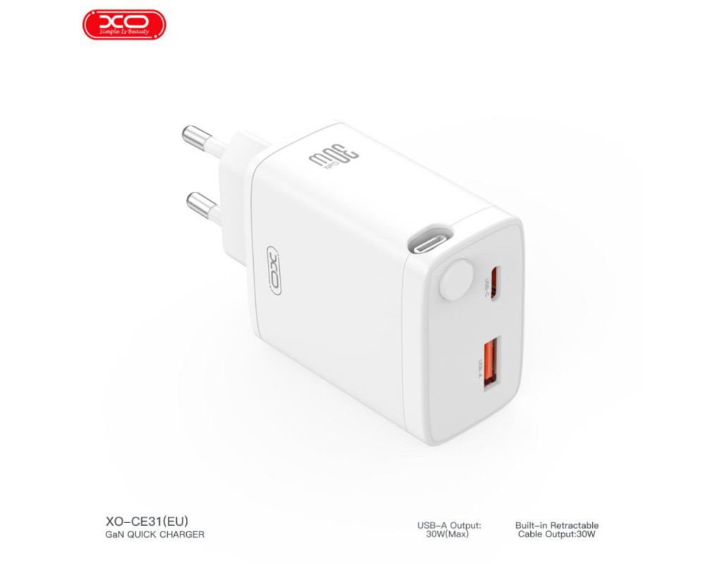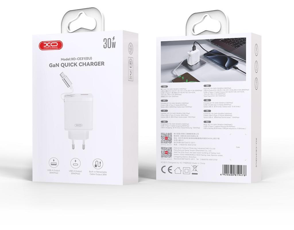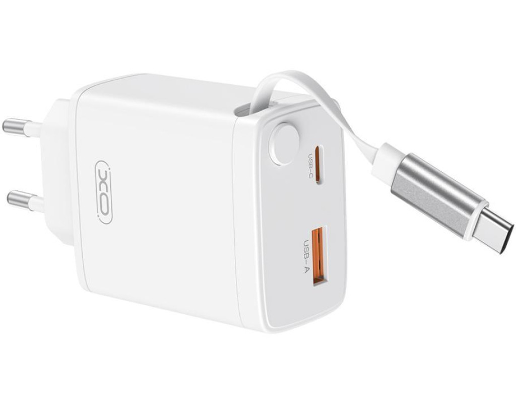 Сетевое зарядное устройство XO CE31 30W GaN – мощность, компактность, универсальность Ищете быстрое и компактное зарядное устройство для всех своих гаджетов? XO CE31 – это современный 30W GaN-зарядный адаптер, объединяющий высокую мощность, два порта (USB-A + USB-C) и встроенный выдвижной Type-C кабель. Все, что нужно – в одном компактном корпусе! Преимущества XO CE31: -технология Gallium Nitride (GaN): меньше тепла, больше мощности, меньший размер; -выдвижной кабель Type-C: всегда под рукой, не запутывается; -двойной выход (USB-A + USB-C): одновременная зарядка двух устройств; -совместимость с большинством смартфонов, планшетов, наушников, powerbank'ов и т.п.; -компактный и удобный для путешествий. Технические характеристики: -Выходная мощность: до 30W -порты: 1 x USB-C, 1 x USB-A + встроенный Type-C кабель -Вход: 100-240V, 50/60Hz -Материал: Огнеупорный пластик -Цвет: Белый |