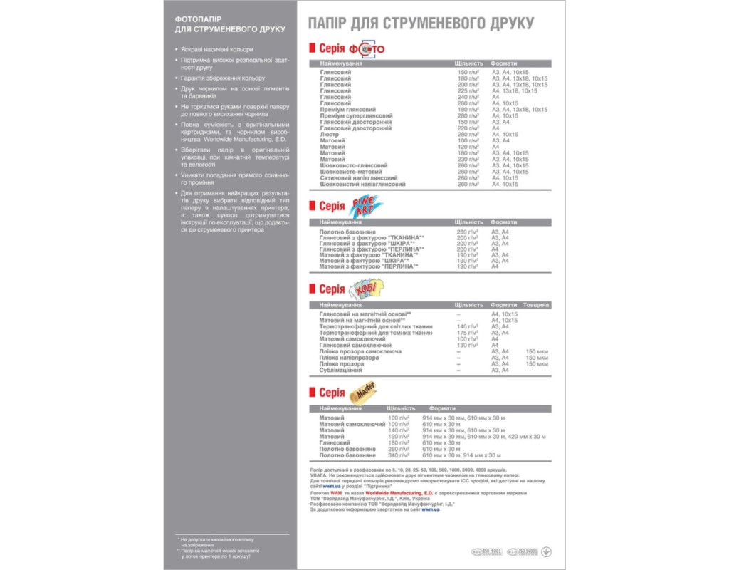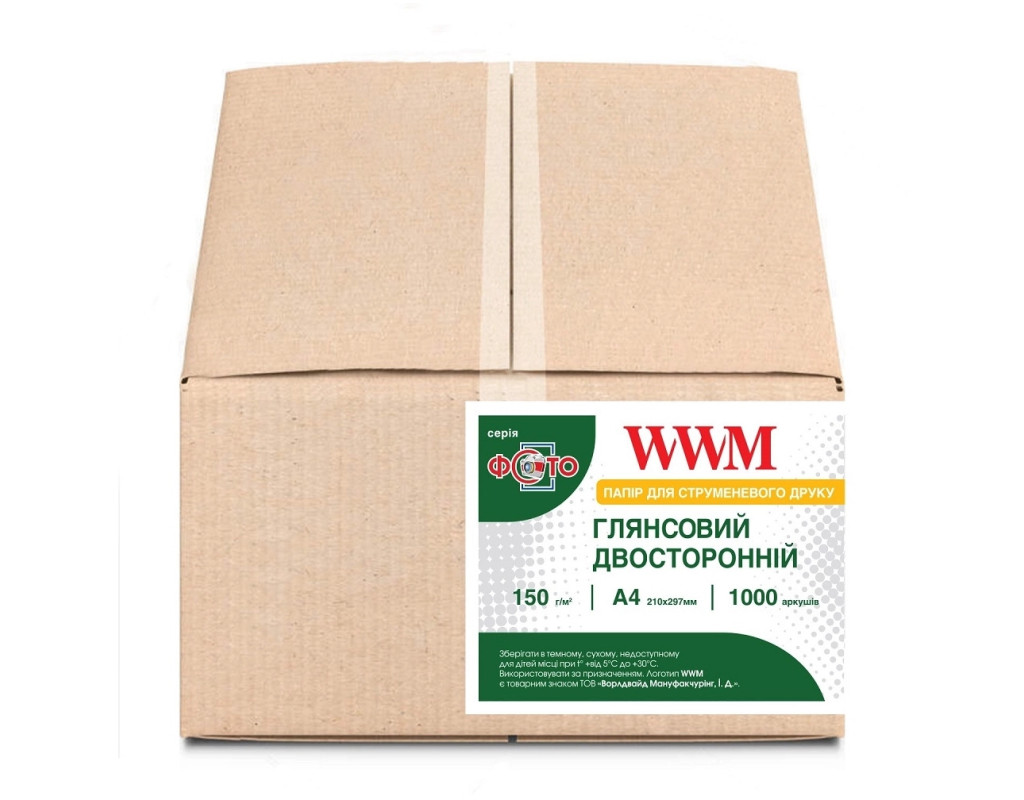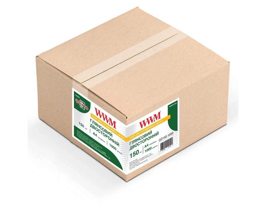 тип печати - струйный, цвет - белый, формат - А4 (297 x 210 мм), плотность - 150 г/м2, покрытие - глянец, количество - 1000