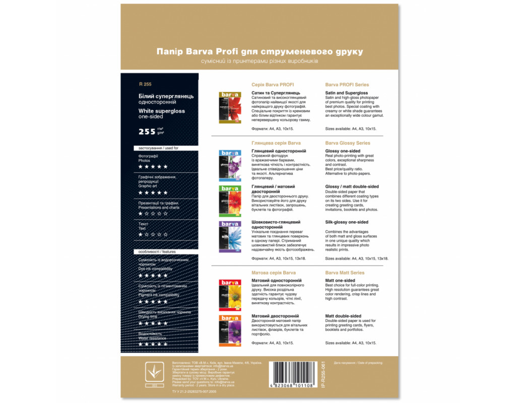 | Бумага серии Barva PROFI - это микропористая фотобумага высокого качества, которая гарантирует мгновенное высыхание чернил. Бумага BARVA A4 PROFI (IP-BAR-P-R255-061) совместима с водорастворимыми и пигментными чернилами. Водостойкая. Идеально подходит для печати фотографий и графических изображений. |