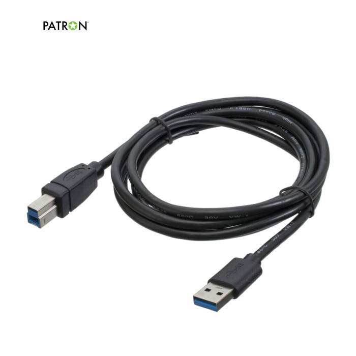 Кабель USB 3.0 AM/BM 1.8m PATRON оснащен двумя коннекторами USB A и USB B, а длины в 1.8 м вполне хватит для подключения принтера, который стоит на полочке Вашего стола. Купите кабель