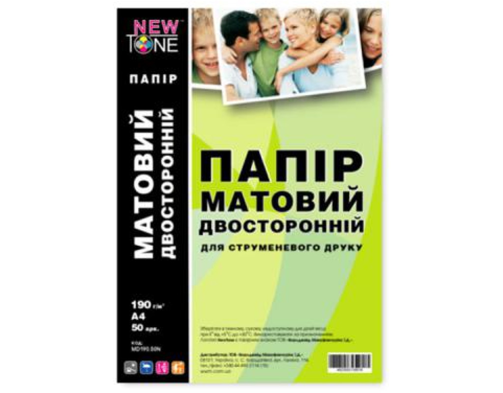 Бумага NewTone A4 (MD190.50N) - это матовая двухсторонняя бумага средней плотности. Рекомендована для печати фотопроспектов, буклетов, брошюр и т.д. с полноформатными графическим изображениями. Бумага наилучшим образом соответствует требованиям при печати рекламных материалов, фотографий, художественных и дизайнерских работ. Для пигментных и водорастворимых чернил. |