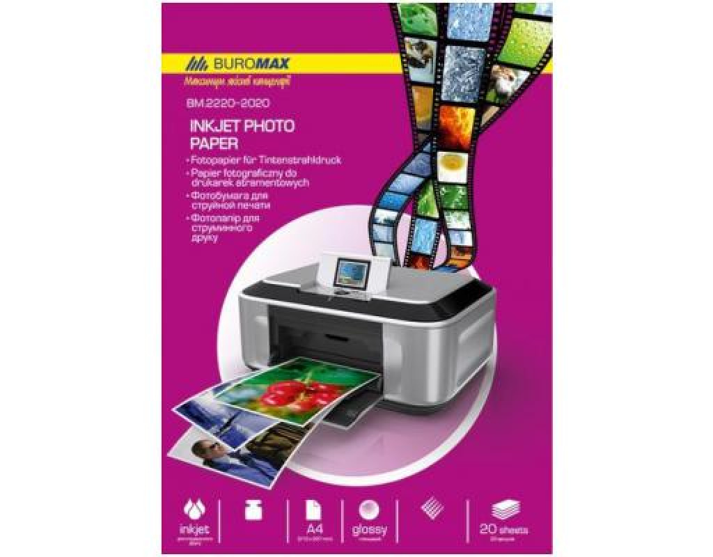 Бумага BUROMAX А4, Glossy, 230 г/м2, 20sheets (BM.2220-6020)