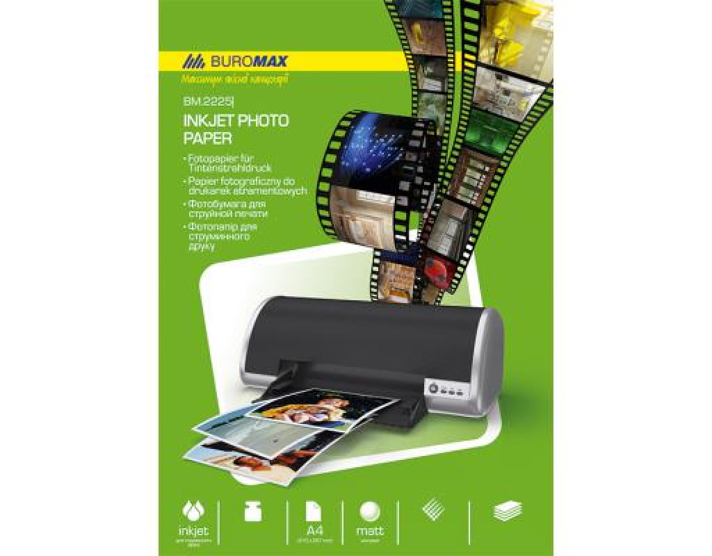 Бумага BUROMAX А4, Matte, 180 г/м2, 20sheets (BM.2225-4020) Матовая фотобумага - идеальный выбор для создания профессиональных и любительских изображений. Моментально впитывает чернила, быстро высыхает, создаёт качественное изображение за считанные минуты. Матовое покрытие фотобумаги обеспечивает большую насыщенность изображения, тонко передает градацию цветов. Фотографии получаются насыщенные и яркие. Глянцевое покрытие также обеспечивает фотоснимкам защиту от воды. Использование фотобумаги |