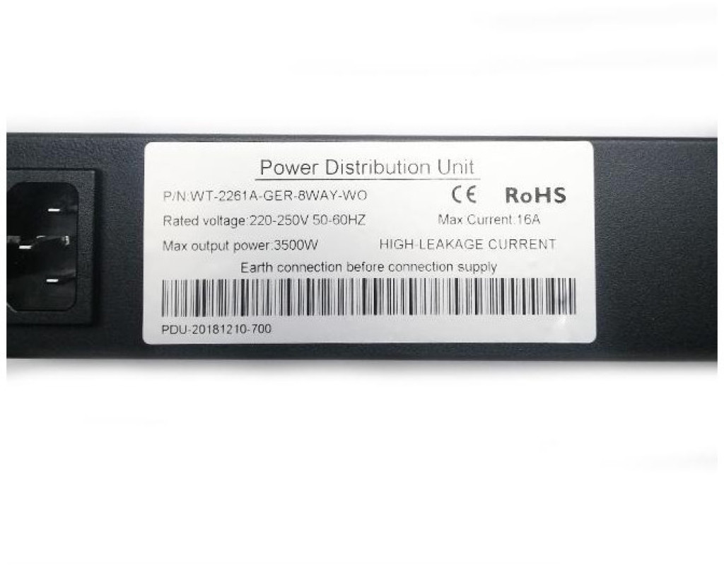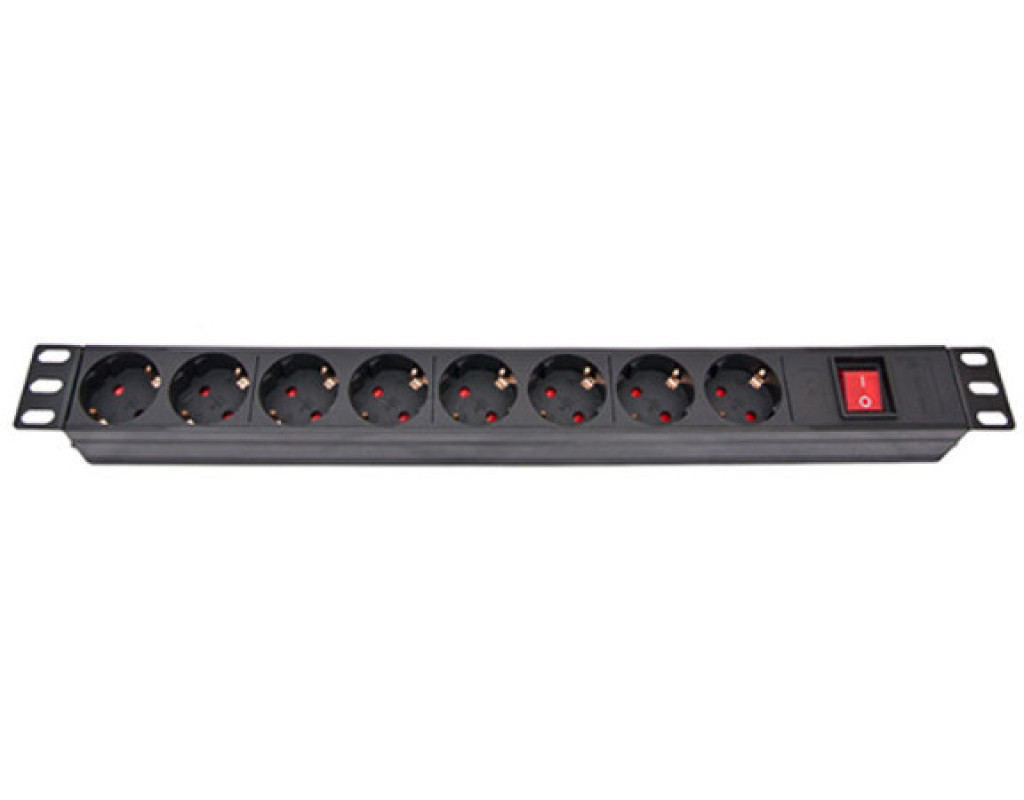 предназначен для распределения питания с напряжением 220 В. Крепление блока электрических розеток на 19” направляющих осуществляется в четырёх точках и занимает 1U. Для подключения используется сетевой шнур с вилкой для включения в розетку сети и разъем для включения в блок розеток. Особенности: сетевой фильтр 19″ на 8 розеток размером 1U, с выключателем. Суммарная мощность до 3,5кВт (16А, 250В).