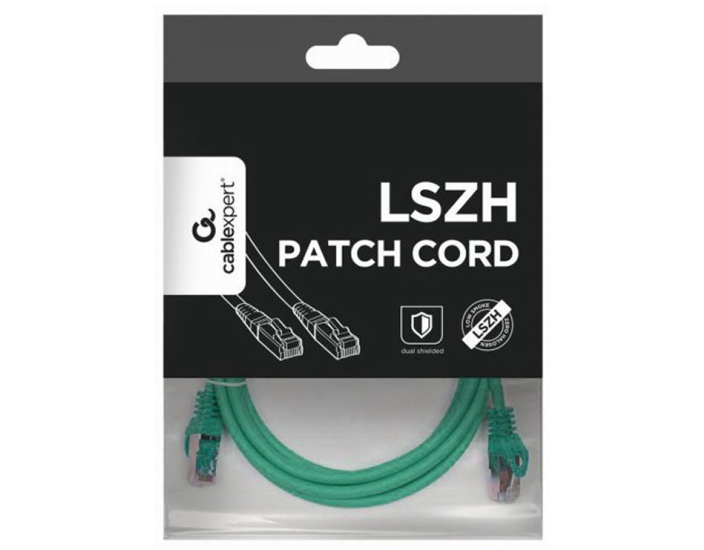 Патч-корд 1м S/FTP Cat 6A CU LSZH green Cablexpert (PP6A-LSZHCU-G-1M)