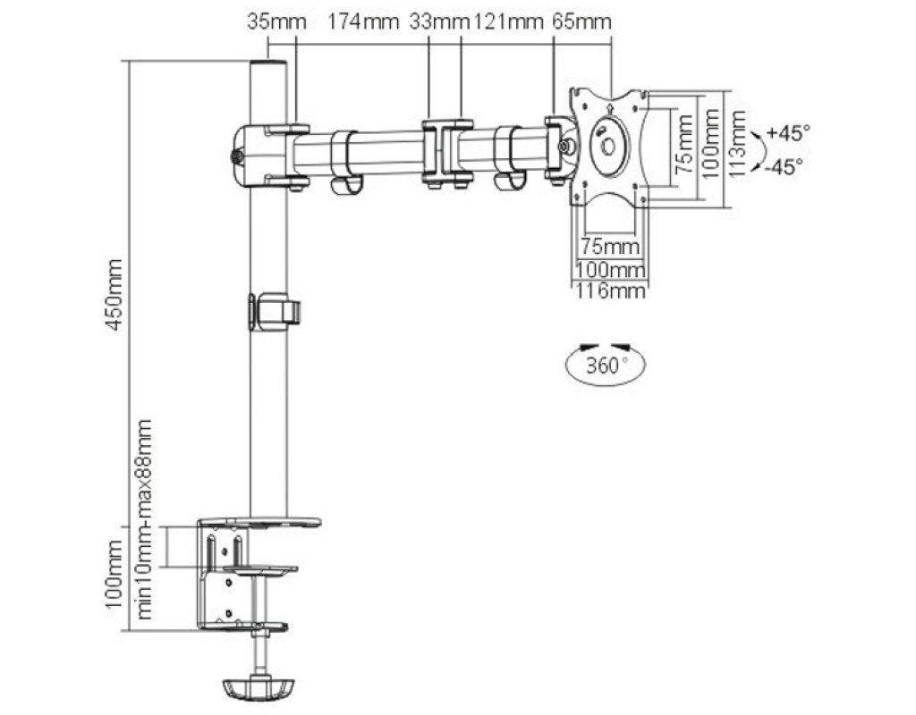 | Кронштейн ITech MBS-03F Black – это высококачественный настольный держатель для монитора, который обеспечит надежную фиксацию и легкость в использовании. Разработанный для современных офисов и рабочих мест, он сочетает в себе функциональность и эстетическую привлекательность. Благодаря поворотно-наклонной конструкции, этот кронштейн позволяет удобно настроить оптимальный угол обзора вашего монитора, обеспечивает комфорт во время работы и предотвращает усталость глаз. Четыре степени свободы и возможность наклона на ±45° и вращения на 180° обеспечивают чрезвычайную гибкость использования. Этот держатель подходит для широкого диапазона диагоналей: от 15.4" до 27", что делает его идеальным выбором для большинства моделей на современном рынке. Варианты установки кронштейна позволяют закрепить его на столе, что экономит пространство и обеспечивает аккуратный вид вашего рабочего места. Максимальная нагрузка составляет до 8 кг, благодаря чему вы можете быть уверены в стабильности и безопасности вашего монитора. Совместимость со стандартами VESA (100 x 100, 75 x 75, 100 x 75) гарантирует простую установку практически любых моделей мониторов. Особого внимания заслуживает качество материалов. Кронштейн ITech MBS-03F изготовлен из металла с дополнительным уплотнением, что обеспечивает повышенную прочность и надежность. Это долговечное решение, которое будет служить вам в течение многих лет, сохраняя безупречную функциональность. Кроме того, данный кронштейн оснащен функцией регулировки по высоте, что позволяет настроить его в соответствии с вашими индивидуальными потребностями. Это, в сочетании с его способностью вращаться на 360 градусов, делает кронштейн чрезвычайно удобным для работы в различных условиях. Также важно помнить о безопасности при монтаже. Используйте только те винты, которые соответствуют вашему телевизору или монитору, для максимально надежного закрепления. Это гарантирует безопасность вашего оборудования и сводит риск повреждений к минимуму. Выбирая кронштейн ITech MBS-03F Black, вы без сомнения получите качественный продукт с продуманным дизайном и практическими функциями, созданный для максимального удобства и эффективности использования в современных офисах и дома. |