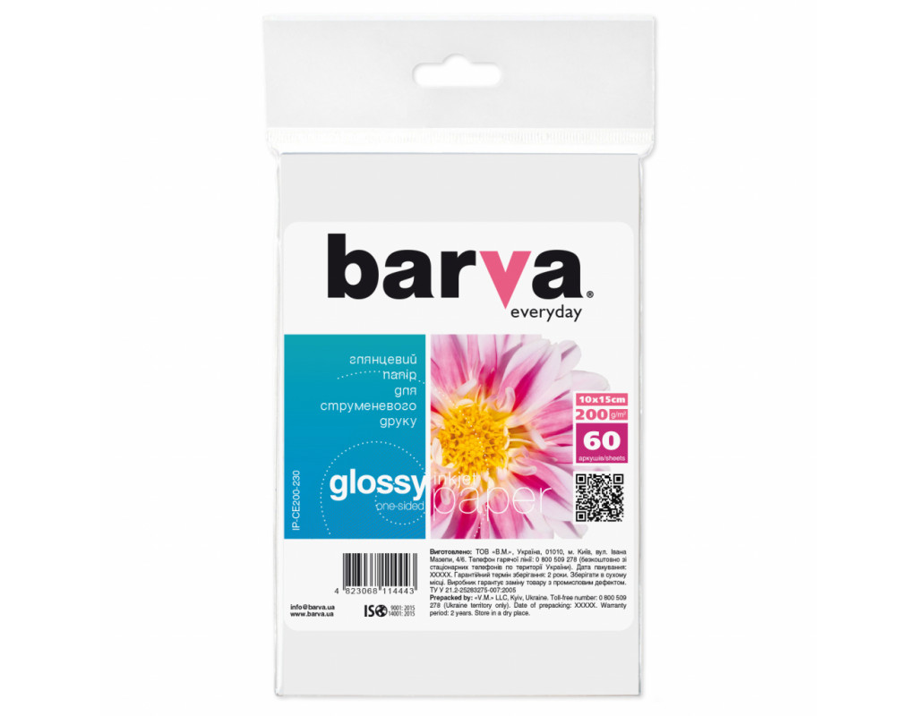 Фотобумага Barva 10x15, 200 g/m2, Everyday, Glossy 60с (IP-CE200-230)