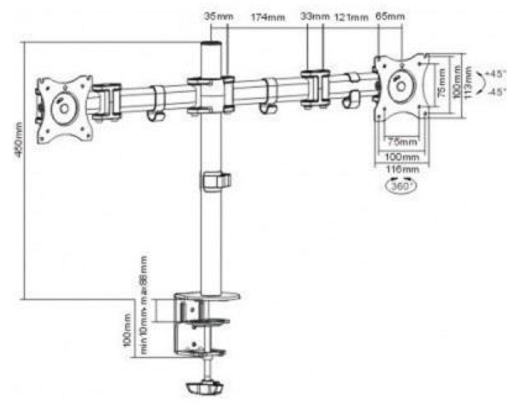 | Кронштейн ITech MBS-12F – это идеальное решение для оптимизации рабочего пространства и повышения эффективности в вашем офисе. Предназначенный специально для мониторов, этот кронштейн позволяет одновременно устанавливать до двух экранов, что делает его незаменимым в таких сферах, как банковский сектор, фондовые биржи, системы видеонаблюдения и ситуационные центры. Изготовленный из высококачественного металла с использованием метода алюминиевого литья, кронштейн обеспечивает непревзойденную прочность и надежность конструкции. Его варианты установки на стол позволяют значительно экономить место, оставляя рабочую зону свободной и удобной для выполнения разнообразных задач. Основным преимуществом модели MBS-12F является ее универсальность. Благодаря совместимости с VESA-стандартами 100 x 100 и 75 x 75, кронштейн поддерживает широкий диапазон диагоналей мониторов от 15" до 27", с максимальной нагрузкой до 8 кг на каждый монитор. Это делает его идеальным для адаптации под разнообразные потребности пользователей. Кронштейн имеет три степени свободы, обеспечивающие максимальную гибкость в использовании. Вы сможете наклонять мониторы под углом ±45°, поворачивать их на 180° и осуществлять вертикальное вращение на 360°, что позволяет легко менять ориентацию с книжной на альбомную, подстраивая экран под текущие задачи. Специальное крепление за столешницу с помощью надежной струбцины гарантирует устойчивость конструкции даже во время интенсивной работы. Для поддержания аккуратного вида рабочего пространства, кронштейн оснащен пластиковыми крючками, которые помогают организовать кабели, закрепляя их вдоль крепления. Кронштейн ITech MBS-12F разработан с заботой о комфорте и производительности пользователя. Его качество и функциональность обеспечивают бесперебойную работу даже в условиях повышенных нагрузок. Это не просто элемент офисного интерьера, а надежный помощник, который совершенствует процессы вашей работы. Не оставляйте свой выбор случаю – обеспечьте свой офис инновационным кронштейном ITech MBS-12F и почувствуйте разницу на собственном опыте. Это инвестиция в качество вашей работы, которая непременно оправдает себя. |
