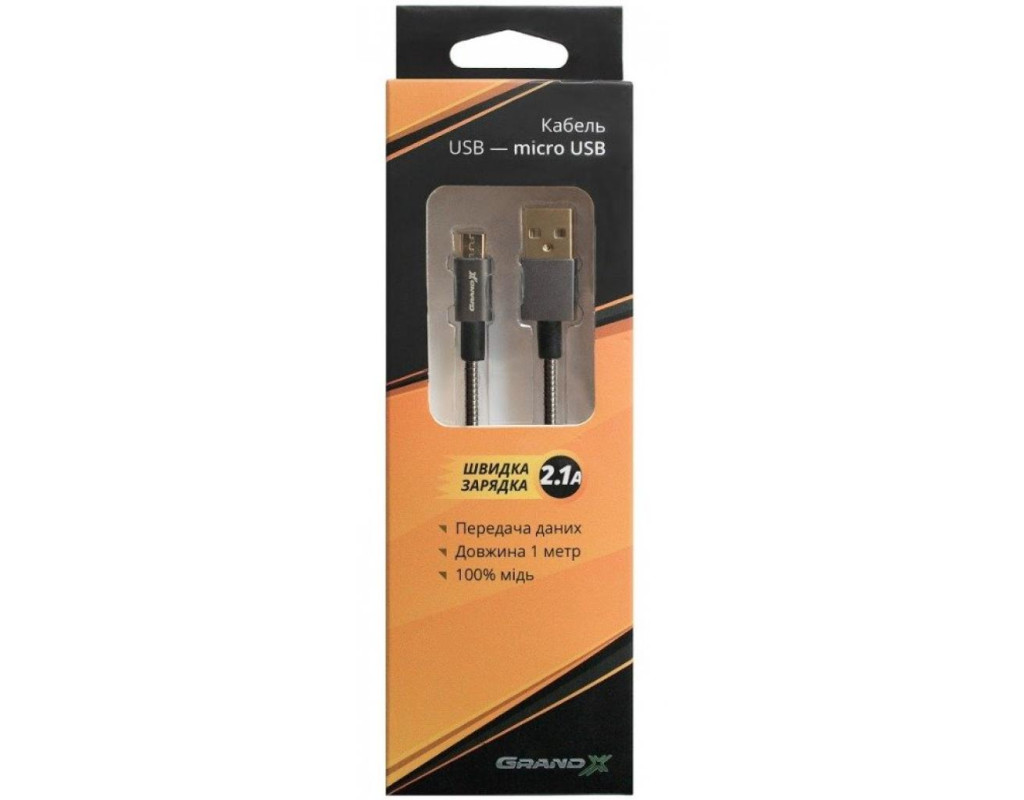 Армированный кабель супер повышенной прочности Grand-X USB-micro USB МM01 разработан специально для использования с током зарядки до 2,1А, что позволяет быстро заряжать устройства, а также полноценно проводить обмен данными. Особенности: - Суперпрочный армированный кабель максимально защищен от повреждений. Нет ничего вечного, но сложно представить себе бытовую ситуацию, при которой возможно повредить этот кабель механически. - Быстрая зарядка. Использование 100% медного провода, никелированных контактов, строгие тесты качества гарантируют отсутствие "проседания" тока на кабеле и максимально быструю зарядку. - Эффектный и футуристически стильный внешний вид привлекает внимание. Также, этому кабелю будет гораздо сложнее затеряться в куче других проводов.