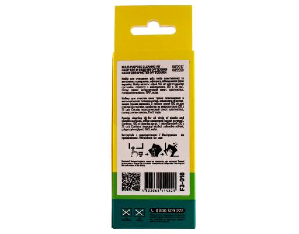 Набор для очистки компьютеров, телефонов, клавиатур, мышек, другого офисного оборудования, пластиковых и металлических поверхностей. Бережно и эффективно удаляет пыль, пятна, отпечатки пальцев и другие загрязнения. Не содержит спирта и ароматизаторов, безвреден для кожи. |