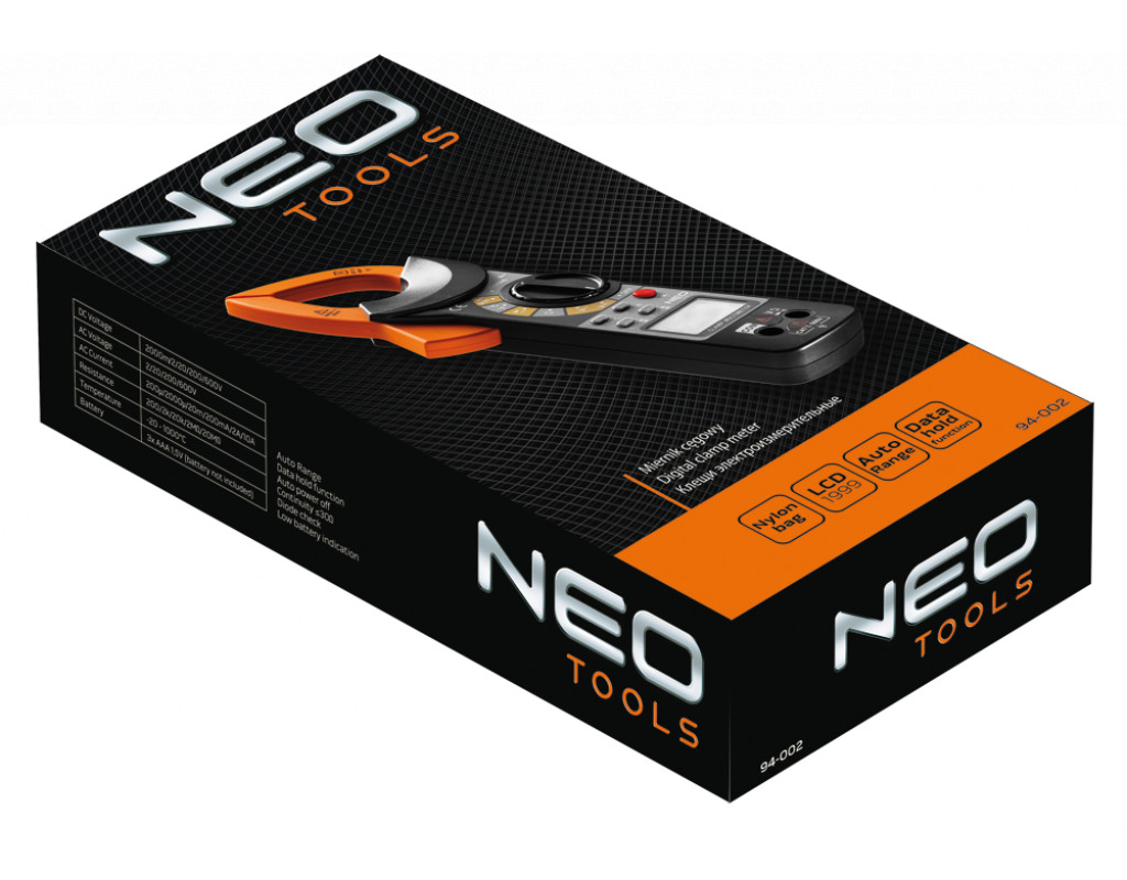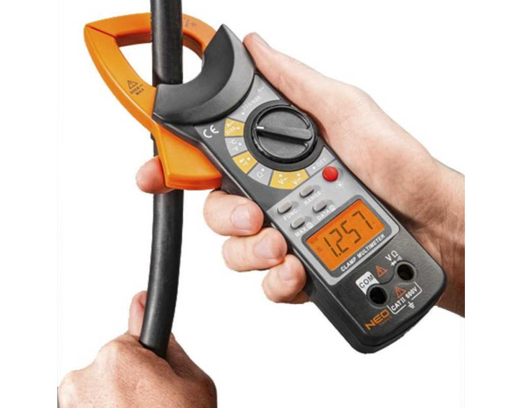 Цифровой мультиметр NEO электроизмерительный - клещи электроизмерительные NEO служат для измерения значения постоянного и переменного напряжения, значения переменного тока, сопротивления цепи, температуры, проверки диодов, а также для прозвонки цепи. С автоматическим переключением диапазонов и сохранением последних показаний. Корпус изготовлен из пластмассы высокого качества. Жидкокристаллический дисплей с подсветкой позволяет работать даже при слабом освещении. Нейлоновый чехол облегчает хранение и транспорт. Соответствие европейским стандартам в области безопасности подтверждает сертификат CE. Бренд NEO оправдывает ожидания профессионалов.