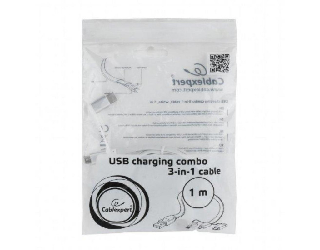 Дата кабель USB 2.0 AM to Lightning + Micro 5P + USB-C 1.0m Cablexpert (CC-USB2-AMLM32-1M-W)