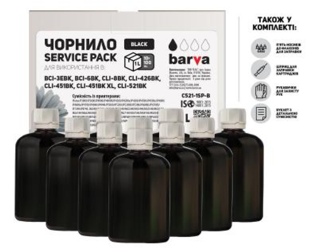 Чернила Barva Canon CLI-521/CL-511 Black 10x100мл ServicePack (C521-1SP-B)