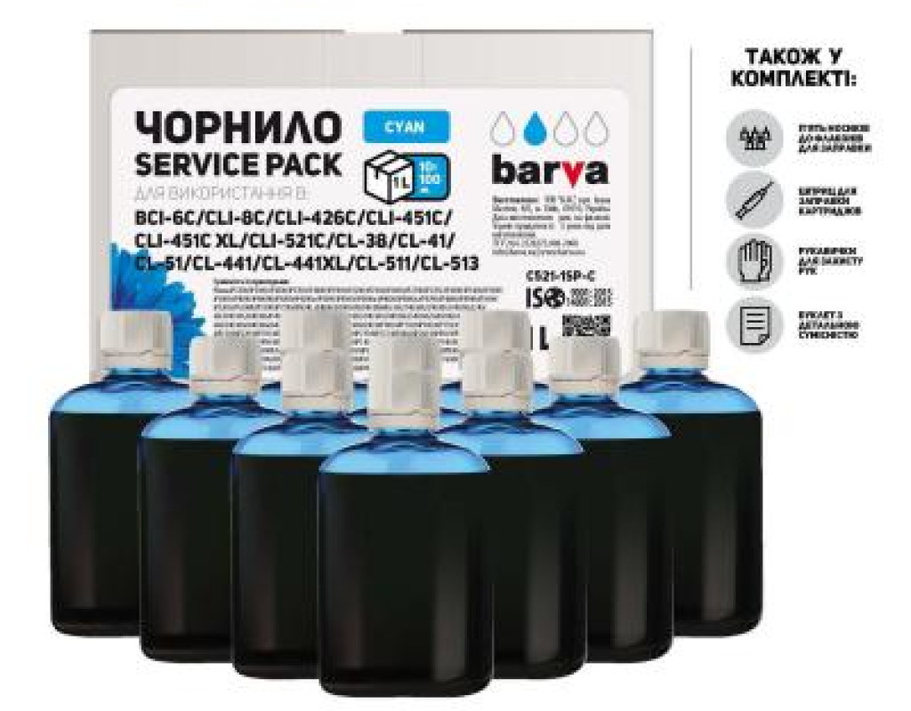 Чернила Barva Canon CLI-521/CL-511 Cyan 10x100мл ServicePack (C521-1SP-C)