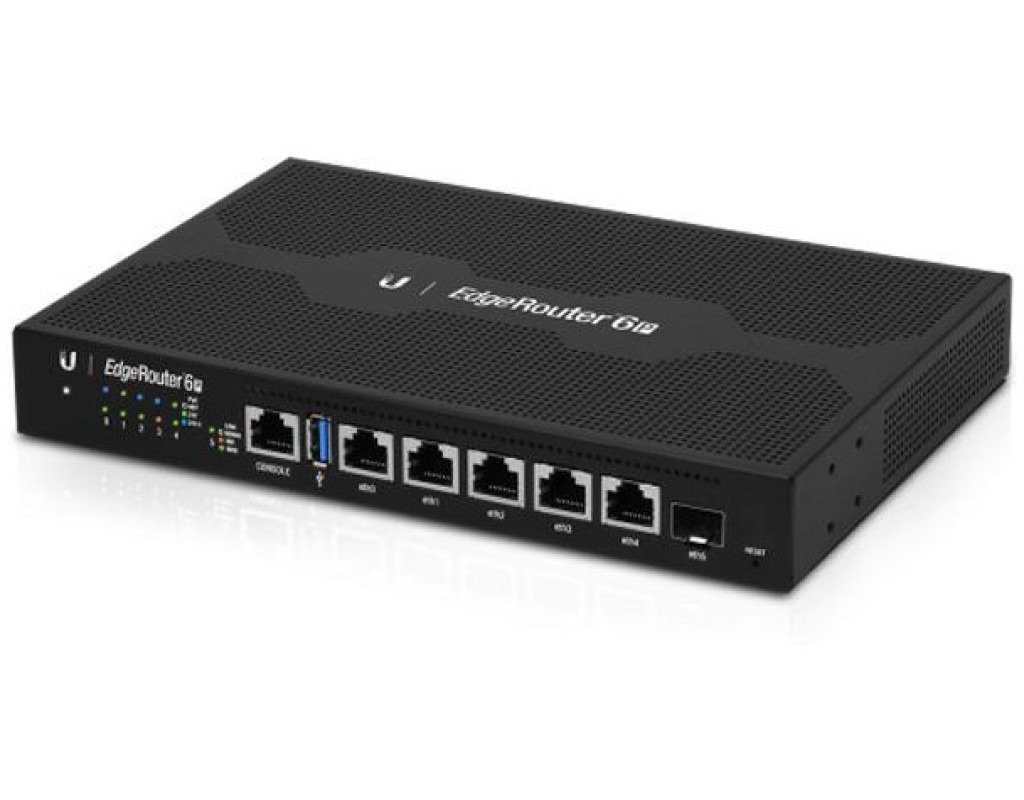Маршрутизатор Ubiquiti ER-6P является производительным 6-ти портовым маршрутизатором, который предназначен для маршрутизации трафика в средних по размеру сетях. В точности так же, как и прочие модели из серии модель маршрутизатора ER-6p управляется при помощи операционной системы EdgeOs, которая предлагает пользователю или администратору массу возможностей по управлению и контролю. Роутер снабжен шестью портами, 5 из которых гигабитные Ethernet с назначением для витой пары и 1 порт SFP для подключения к оптоволокну. На лицевой стороне роутера размещена индикационная панель со светодиодами, что свойственно всему оборудованию Ubiquiti. С её помощью можно сразу оценить состояние портов, узнать о наличии или отсутствии соединения, а также проанализировать скорость и активность обмена данными. Роутер дополнительно снабжен интерфейсом USB 3.0 и консольным портом, при помощи которого можно управлять маршрутизатором. Порты №1-5 можно настроить на раздачу PoE 24, если необходимо подавать питание клиентским устройствам через кабель Ethernet. Сам маршрутизатор EdgeRouter 6P получает питание через внешний адаптер 24 В, 2.5 А, поставляемый вместе с роутером, так как входит в комплектацию. В Ubiquiti снабдили роутер EdgeRouter-6p мощным 4-ех ядерным процессором MIPS64 (частота 1 ГГц) и оперативной памятью стандарта DDR 3. Такая комплектация гарантирует высочайшую производительность и надежную стабильность работы маршрутизатора даже при пиковой нагрузке и при неожиданно высоком объеме обмена трафиком. Web-интерфейс многим уже известной операционной системы EdgeOs позволяет настроить любой из нужных параметров ER-6P. Так можно выбрать тип подключения к кабелю провайдера (PPPoe, DHCP, static IP), настроить различные параметры, включая сервер NAT, локальную сеть и прочее. Здесь же в веб-интерфейсе можно просматривать статистические данные относительно работы сети. Администраторы могут управлять через SSH. |