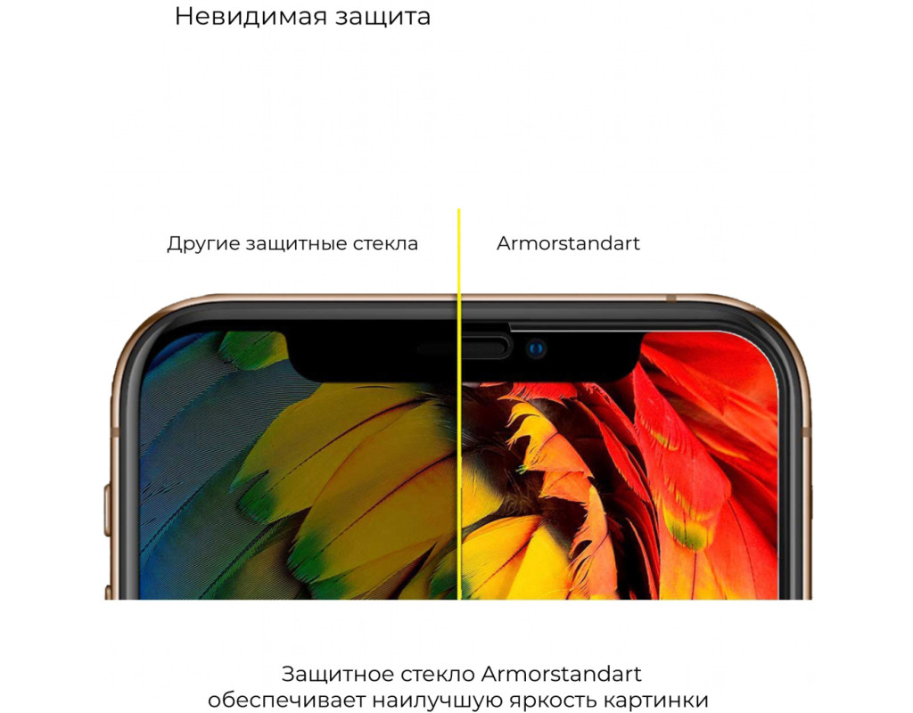 Защитное стекло ArmorStandart Full-Glue закрывает не только дисплей смартфона, но и его рамку, при этом клеится по всей площади дисплея. Оно изготовлено из качественных материалов и помогает защитить смартфон от механических повреждений. Стекло отлично предотвращает появление не только царапин, но и сколов, а также трещин на экране смартфона. Полная проклейка стекла по всей площади дисплея обеспечивает отсутствие воздушных прослоек, а также максимально отзывчивую работу сенсора, что особенно важно при интенсивном использовании устройства. Преимущества: