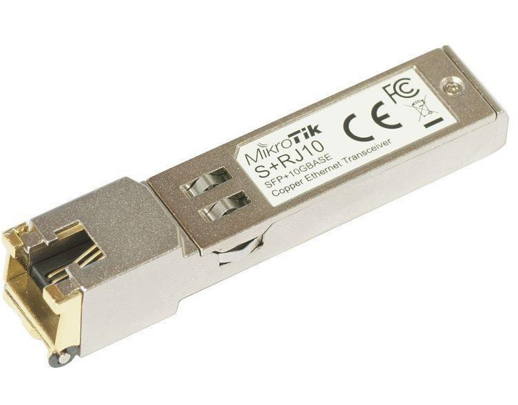Модуль SFP Mikrotik S+RJ10 Уникальный шестискоростной модуль MikroTik S+RJ10 открывает весь мир возможностей высокоскоростной соединяемости, поддерживая скорость до 10 Гбит/с по традиционным кабелям витая пара для, имеющихся изделий, оснащённых портами SFP+. Теперь, любое устройство MikroTik, имеющее порт SFP+ может быть использовано без установки каких-либо оптоволоконных кабелей, достаточно вставить в него S+RJ10, и сеть будет модернизирована до 10 Гбит/с, что сделает её пригодной для аппаратного обеспечения RJ45 следующего поколения. Особенности:
