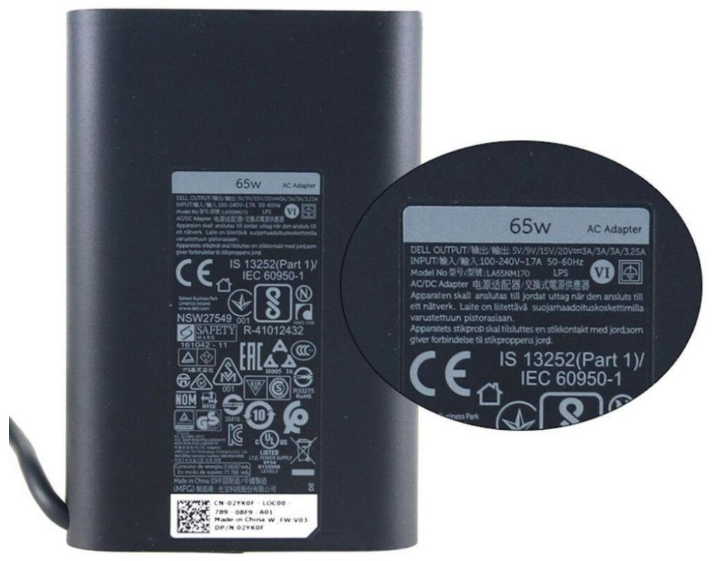 Блок питания к ноутбуку Dell 65W Oval 20V разъем Type-C (HA65NM170 / A40243) Оригинальный блок питания для ноутбука – это интеллектуальный адаптер переменного тока, который обеспечит питание вашего помощника от электросети, а также надежно защитит его от скачков и перепадов напряжения даже при ударах молний. Только оригинальный блок питания может гарантировать «правильный» процесс зарядки аккумулятора в Вашем ноутбуке и, благодаря этому, существенно продлить его срок службы. Благодаря своим компактным размерам он не будет занимать много места на Вашем рабочем столе и удобно разместится в сумке для ноутбука. Не издает посторонних звуков при работе и отличается повышенным качеством кабеля. При выборе блока питания к своему ноутбуку обратите внимание на его параметры питания и тип разъема. Мощность выбранного блока питания должны быть не ниже чем мощность блока питания, которым комплектовался ваш ноутбук. В противном случае адаптер будет очень сильно нагреваться в процессе работы, не сможет корректно обеспечивать питанием узлы вашего аппарата и может очень быстро выйти из строя. |