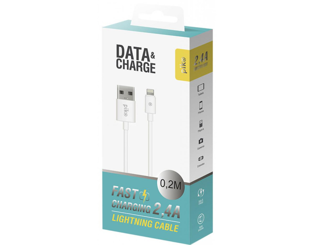Дата кабель USB 2.0 AM to Lightning 0.2m white Piko (1283126493836)