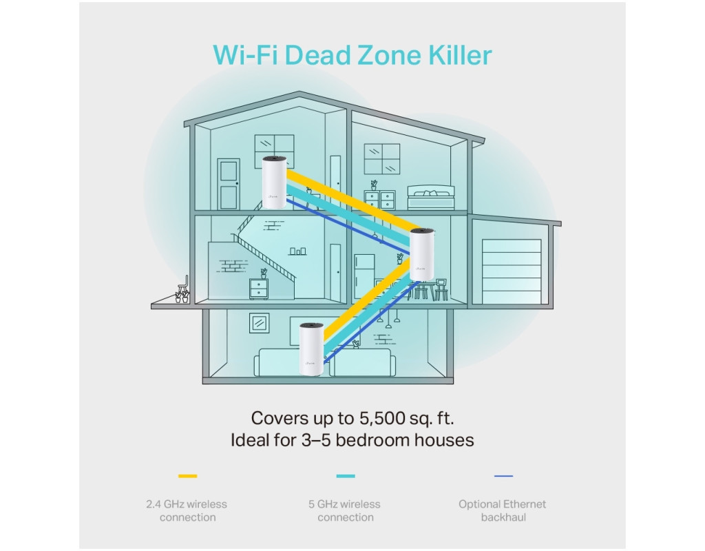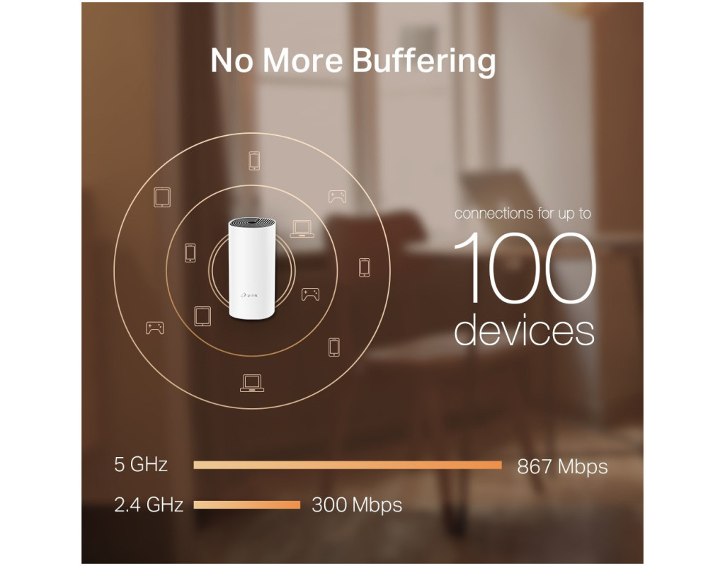 Получите новый опыт использования Wi-Fi Для покрытия Wi-Fi во всем доме Deco M4 использует технологию TP-Link Mesh. Благодаря неразрывному соединению несколько модулей образуют единую домашнюю сеть - такого опыта у вас ещё не было! Избавьтесь от «мёртвых» зон Deco максимально просто обеспечивает мощный Wi-Fi в каждой точке вашего дома. Благодаря проводному и беспроводному подключению устройства Deco работают как единое целое для обеспечения максимально скоростного и непрерывного Wi-Fi. Нужно большее покрытие сети? Просто добавьте ещё один модуль Deco. Бесшовный роуминг с одним именем сети Устройства Deco вместе образуют единую Wi-Fi сеть. Ваш смартфон или планшет будет автоматически подключаться к Deco на самой большой скорости в любой точке вашего дома, обеспечивая непрерывное соединение. Никакой буферизации Благодаря скоростному Wi-Fi стандарту 802.11ac Deco способен обеспечить непрерывное соединение до 100 устройств. «3» в «1»: роутер, точка доступа и усилитель Wi-Fi сигнала Многофункциональный Deco M4 может работать в качестве роутера, точки доступа или усилителя Wi-Fi сигнала одновременно. Просто выберите подходящий режим и ощущите максимальную гибкость при использовании сети! Всё в приложении Настройка Deco M4 выполняется быстро и легко. Просто распакуйте систему, загрузите приложение и следуйте инструкциям на экране. Простое управление Управляйте Wi-Fi из дома или удалённо через приложение Deco. Вам доступны обзор и приоритизация подключённых устройств, настройка гостевой сети и т.д. Голосовое управление Подключите Alexa и управляйте Deco M4 с помощью голосовых команд. Не отвлекайтесь ни на что. Родительский контроль Интуитивная функция родительского контроля позволит следить за активностью ваших детей в интернете. |