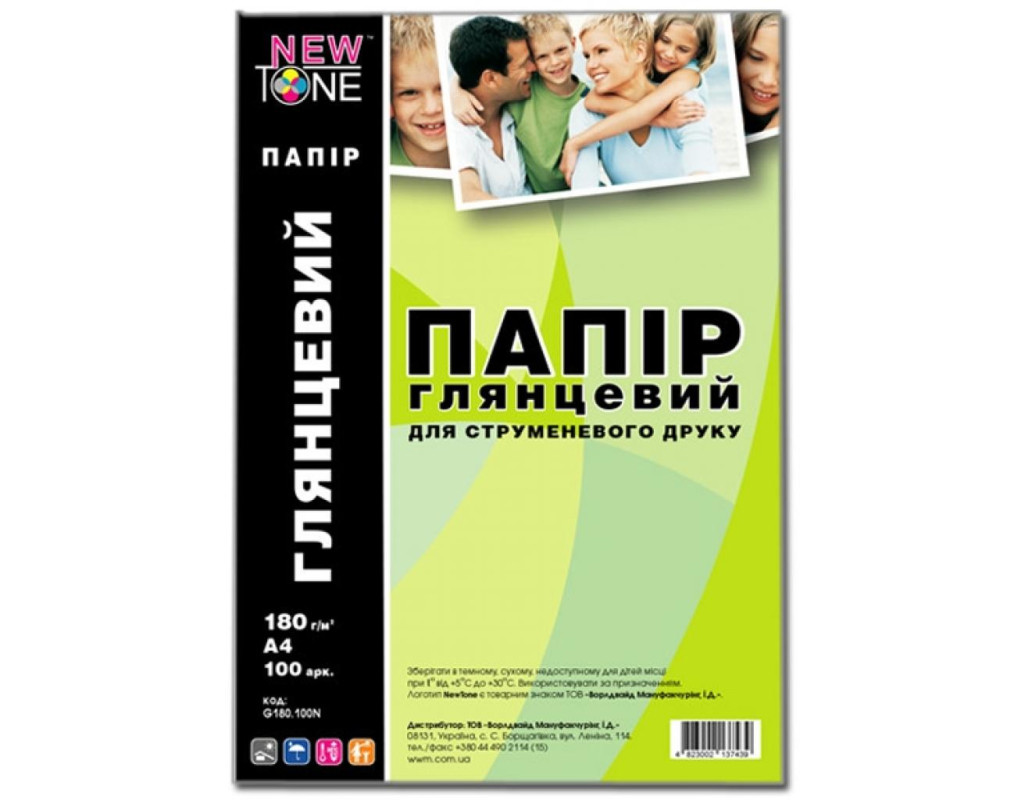 тип печати - струйный, цвет - белый, формат - А4 (297 x 210 мм), плотность - 180 г/м2, покрытие - глянец, количество - 100