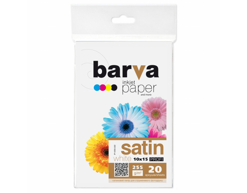 Фотобумага Barva 10x15, 255 g/m2, PROFI, 20арк, satin (V255-222)