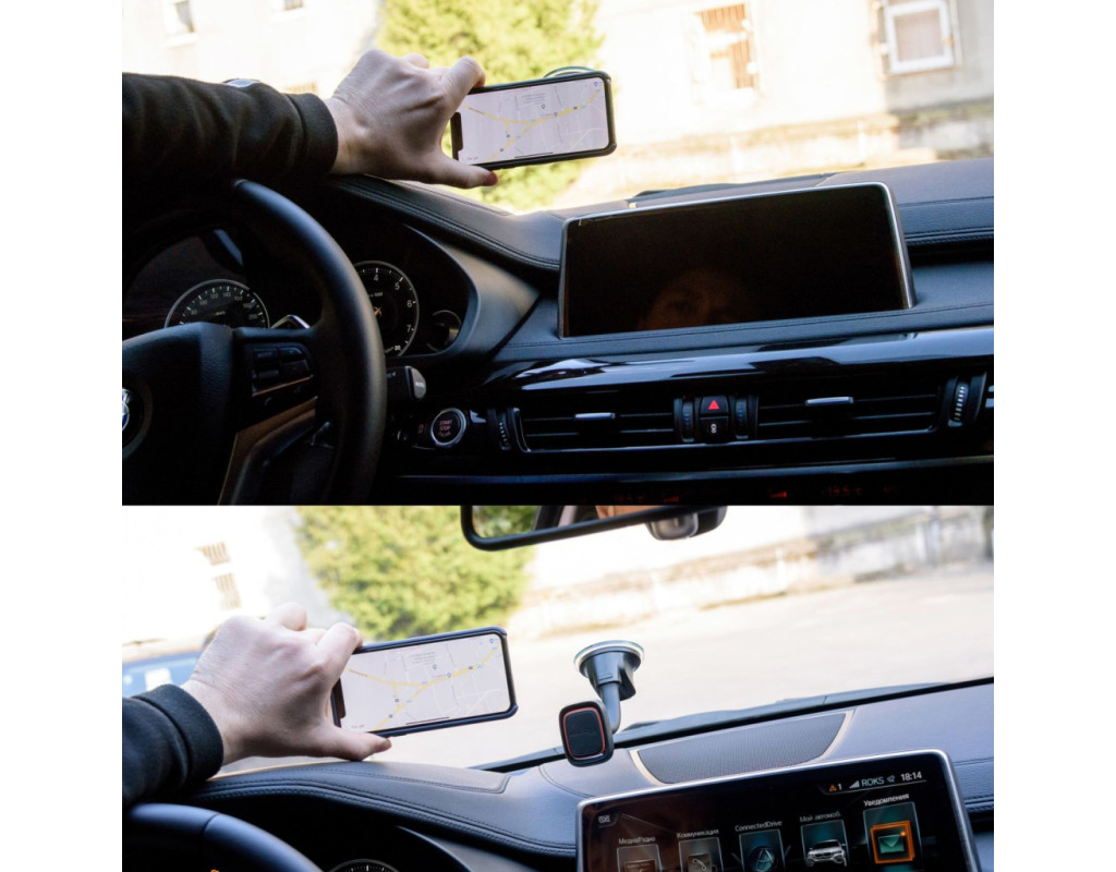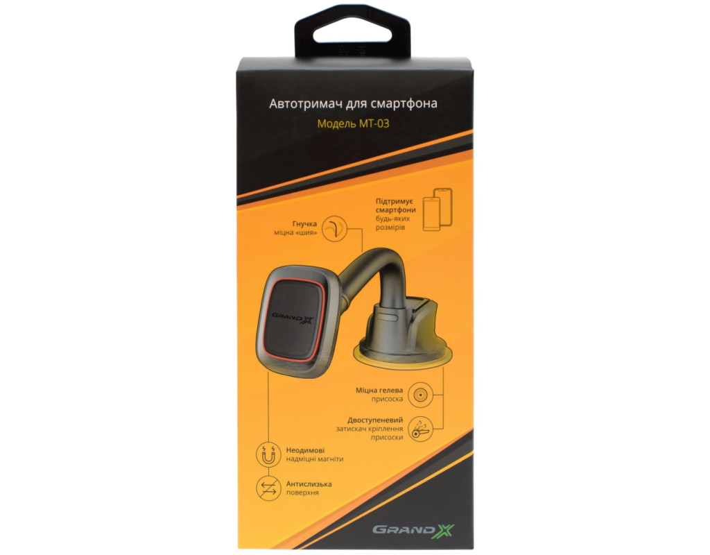 Простой, в установке и использовании, автомобильный держатель Grand-X MT-03 подойдет для смартфонов любых размеров. Универсальность крепежа позволяет использовать данный держатель практически в любом автомобиле, а углы наклона дают пользователю возможность разместить смартфон в максимально максимально удобном месте и под лучшим для просмотра информации углом. Одним движением руки Вы можете легко изменять положение смартфона с вертикального на горизонтальное и наоборот, а крепкие неодимовые магниты надежно фиксируют смартфон на всех поворотах и неровностях дороги. Клейкая гелевая основа присоски с двойной фиксацией дает дополнительную фиксацию, что способствует максимальной надежности крепления. Особенности: