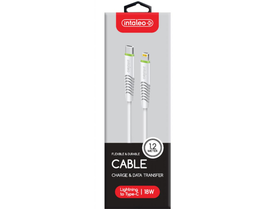 Дата кабель USB-C to Lightning 1.2m 18W white Intaleo (1283126504099)