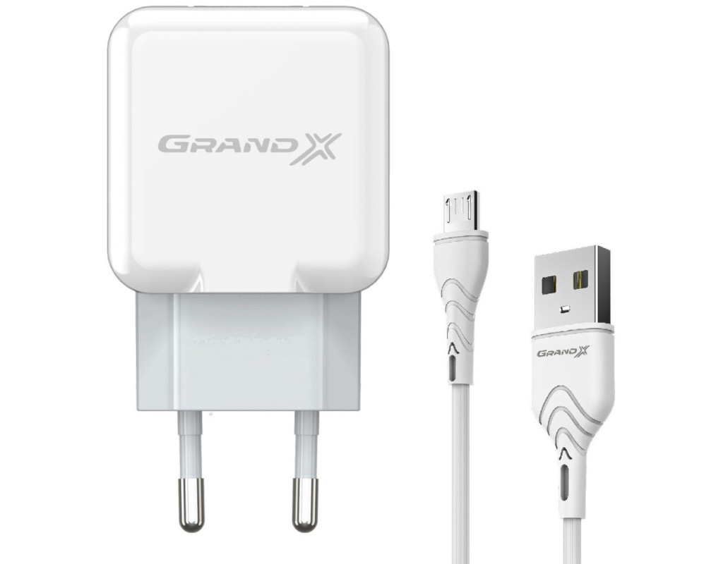 Зарядное устройство Grand-X USB 5V 2,1A White + cable USB -> micro USB, Cu (CH-03UMW)