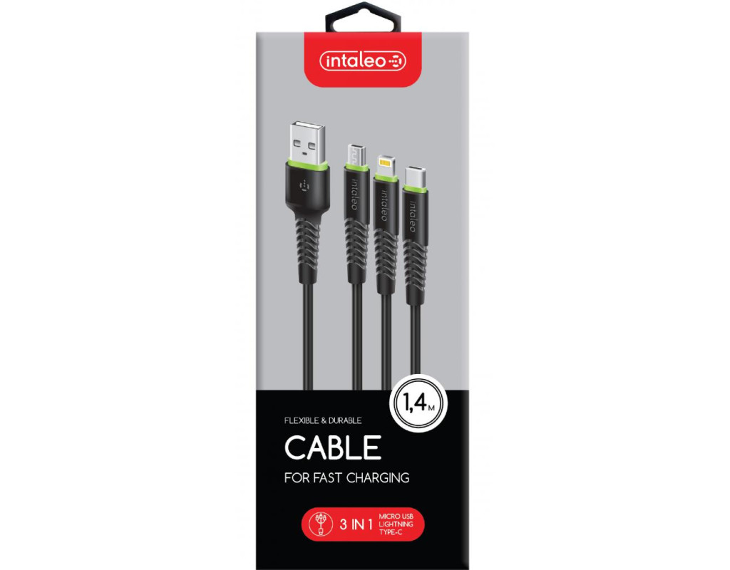 Дата кабель USB 2.0 AM to Lightning + Micro 5P + USB-C 1.4m CBFLEXU1 bl Intaleo (1283126487521)