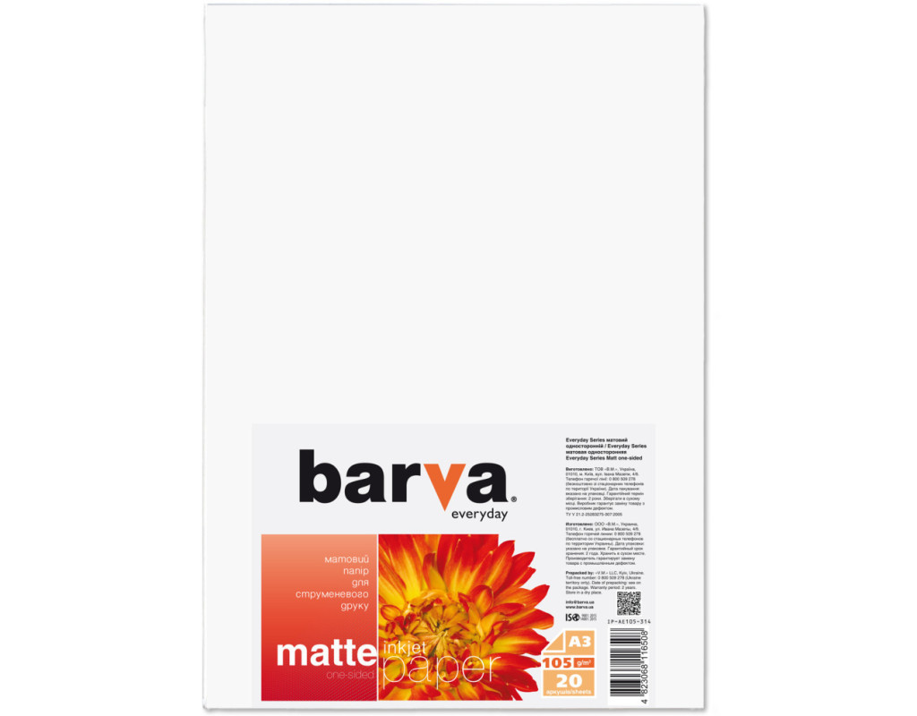 Фотобумага Barva A3 Everyday Matte 105г, 20л (IP-AE105-314)
