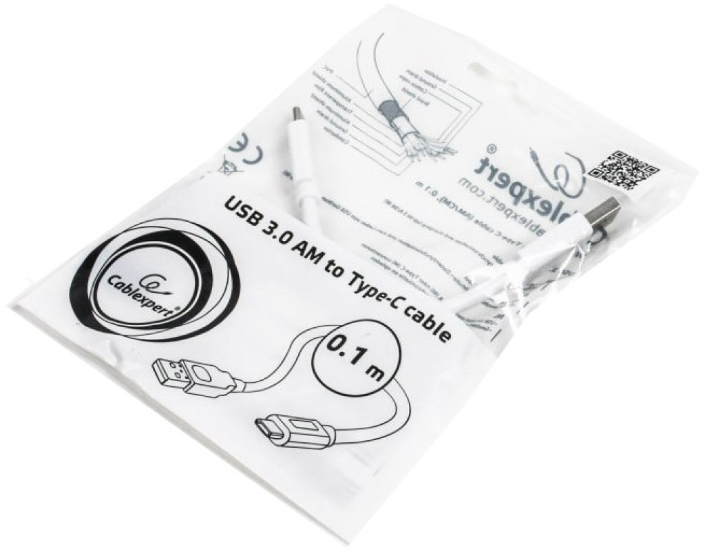 Дата кабель USB 3.0 AM to USB-C 0.1m Cablexpert (CCP-USB3-AMCM-W-0.1M)