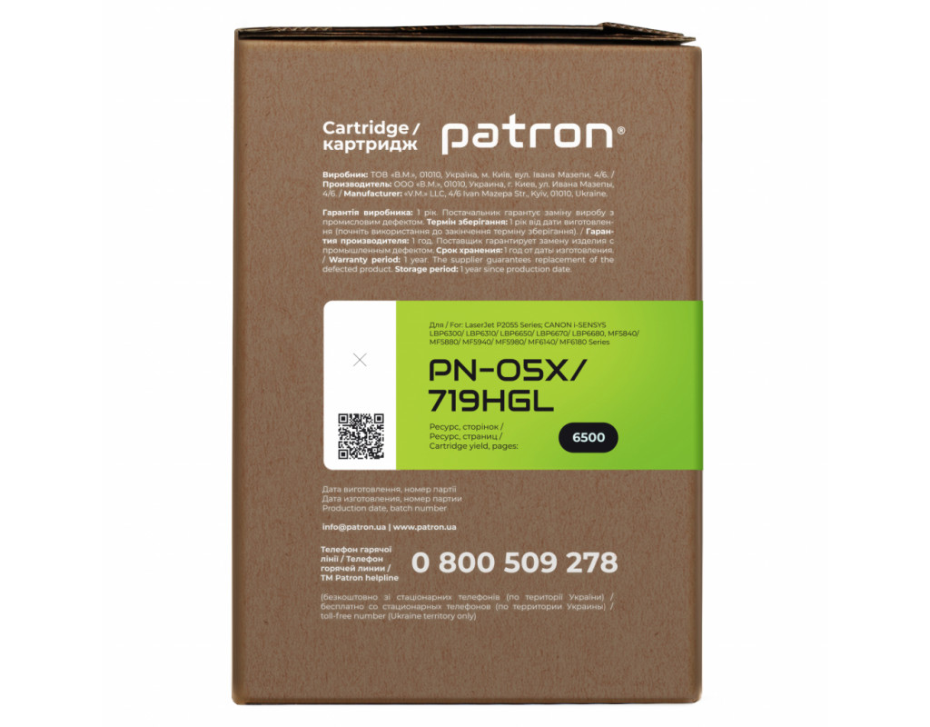 Картридж Patron HP LJ CE505X/CANON 719H GREEN Label (PN-05X/719HGL)