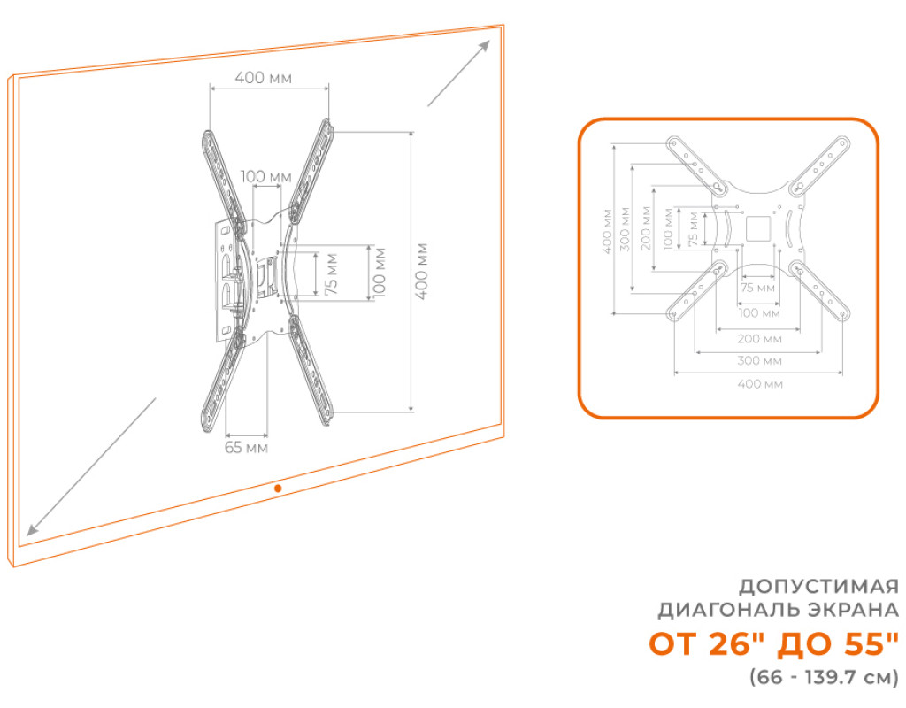 | Кронштейн ACCLAB AL-BT400 (1283126504679) — это идеальное решение для тех, кто стремится максимально эффективно использовать пространство в своем доме или офисе, не поступаясь качеством и функциональностью. Этот поворотно-наклонный кронштейн создан для установки телевизоров на стену, обеспечивая надежность и удобство использования. Благодаря своей конструкции, ACCLAB AL-BT400 легко справляется с телевизорами с диагональю от 26" до 55", включая популярные модели с размерами экранов 31.5", 40", 47", 50", 52" и многие другие. Максимальная поддерживаемая масса составляет 30 кг, что гарантирует безопасную установку даже тяжелых телевизоров. Кронштейн соответствует стандартам VESA, поддерживая размеры от 75 x 75 до 400 x 400, что делает его крайне универсальным. Особенностью модели являются две степени свободы, которые позволяют не только поворачивать телевизор, но и наклонять его в пределах от 5° до -14°, обеспечивая оптимальный угол обзора независимо от положения зрителя. Это особенно актуально в больших комнатах или при просмотре с разных точек пространства. Материал, из которого изготовлен кронштейн — высококачественный металл, что гарантирует его долговечность и устойчивость к внешним воздействиям. Дизайн кронштейна ACCLAB AL-BT400 предусматривает не только функциональность, но и эстетическую привлекательность, что позволяет ему стать органичной частью любого интерьера. Комплектация товара включает в себя все необходимые элементы для быстрой и легкой установки, а также детальную инструкцию по использованию, что делает монтаж простым и понятным даже для тех, кто впервые сталкивается с подобной задачей. Выбирая кронштейн ACCLAB AL-BT400, вы получаете не только функциональное устройство для монтажа телевизора, но и надежного помощника в создании уютной домашней атмосферы или современного офисного пространства. Это инвестиция в комфорт и качество, которая безусловно оправдает ваши ожидания. |