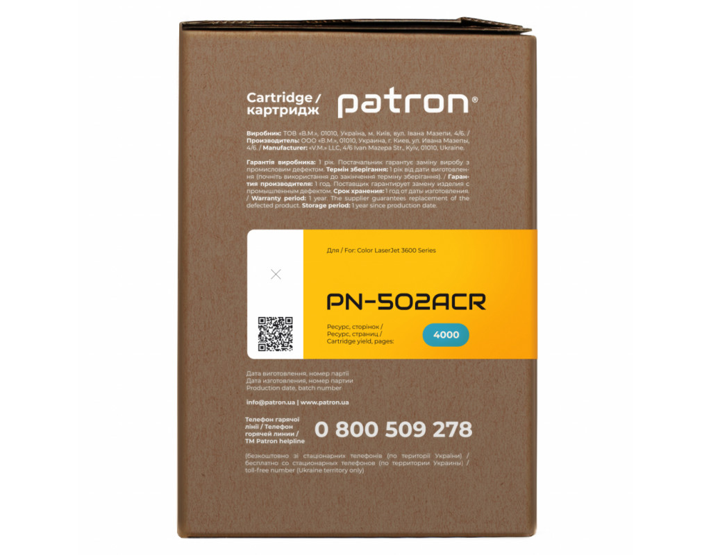 Картридж Patron HP CLJ Q6471A CYAN Extra (PN-502ACR)