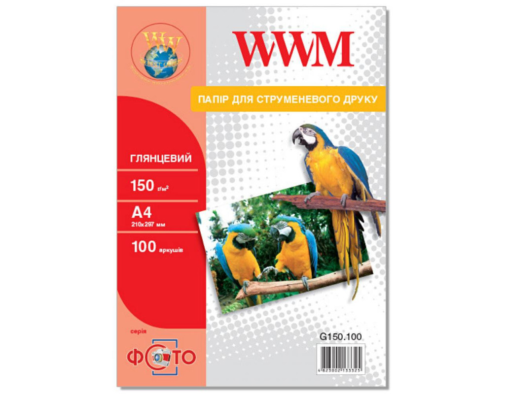 тип печати - струйный, цвет - белый, формат - А4 (297 x 210 мм), плотность - 150 г/м2, покрытие - глянец, количество - 100
