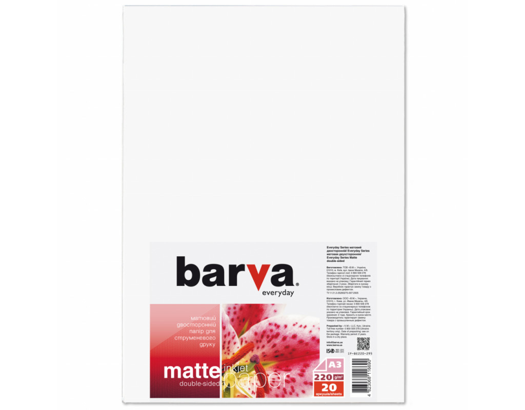 | ФОТОБУМАГА BARVA Everyday Матовая Двусторонняя 220 г/м2 A3 20 л (IP-BE220-295) обеспечивает качественную печать изображений повышенной четкости. Как правило, ее рекомендуют для печати текстовых документов, иллюстрированных рисунков, графиков и чертежей, а также плакатов и цветных проспектов. Сочные цвета и четкие линии - вот что привлекает в этой бумаге профессионалов. Изображения на матовой бумаге не имеют блеска, все его детали высококонтрастные, а тоны имеют бархатную глубину.Двухсторонние виды матовой бумаги позволяют использовать обе стороны бумаги без риска ее промокания, что очень важно для изготовления поздравительных открыток, буклетов, портфолио.Матовая бумага Barva совместима как с водорастворимыми, так и с пигментными чернилами. Поддерживает высокое разрешение принтера 5760+ dpi.ФОТОБУМАГА BARVA Everyday Матовая Двусторонняя 220 г/м2 A3 20 л (IP-BE220-295) |