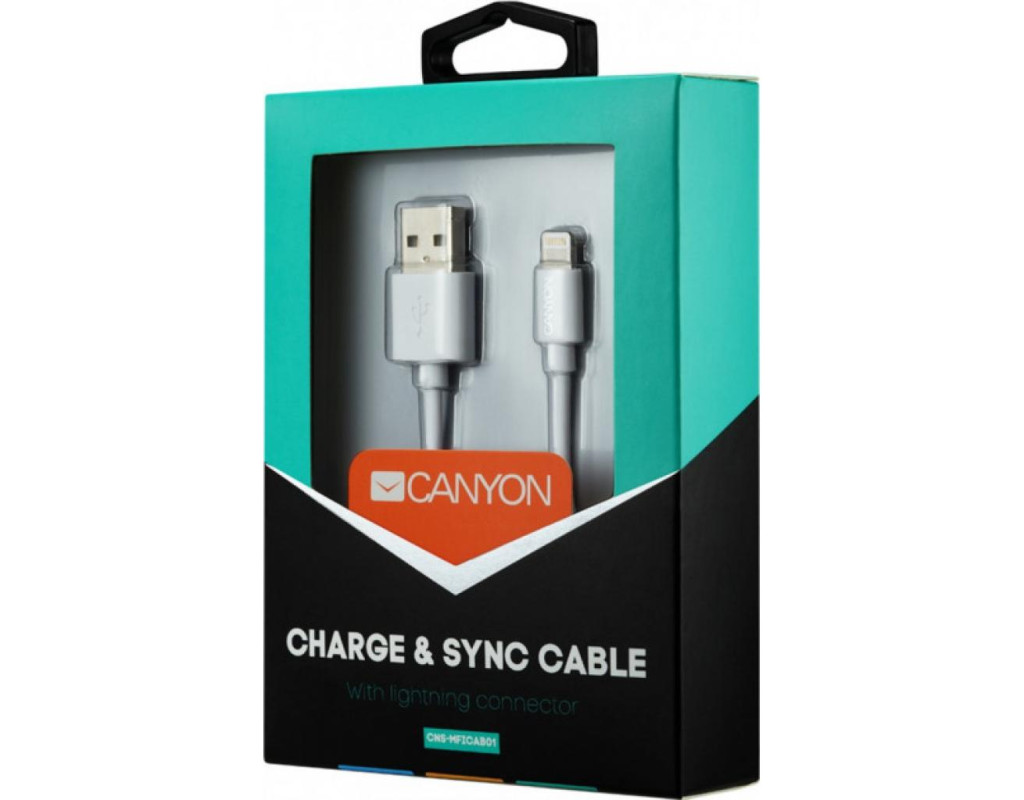 Дата кабель USB 2.0 AM to Lightning 1.0m MFI Canyon (CNS-MFICAB01W)
